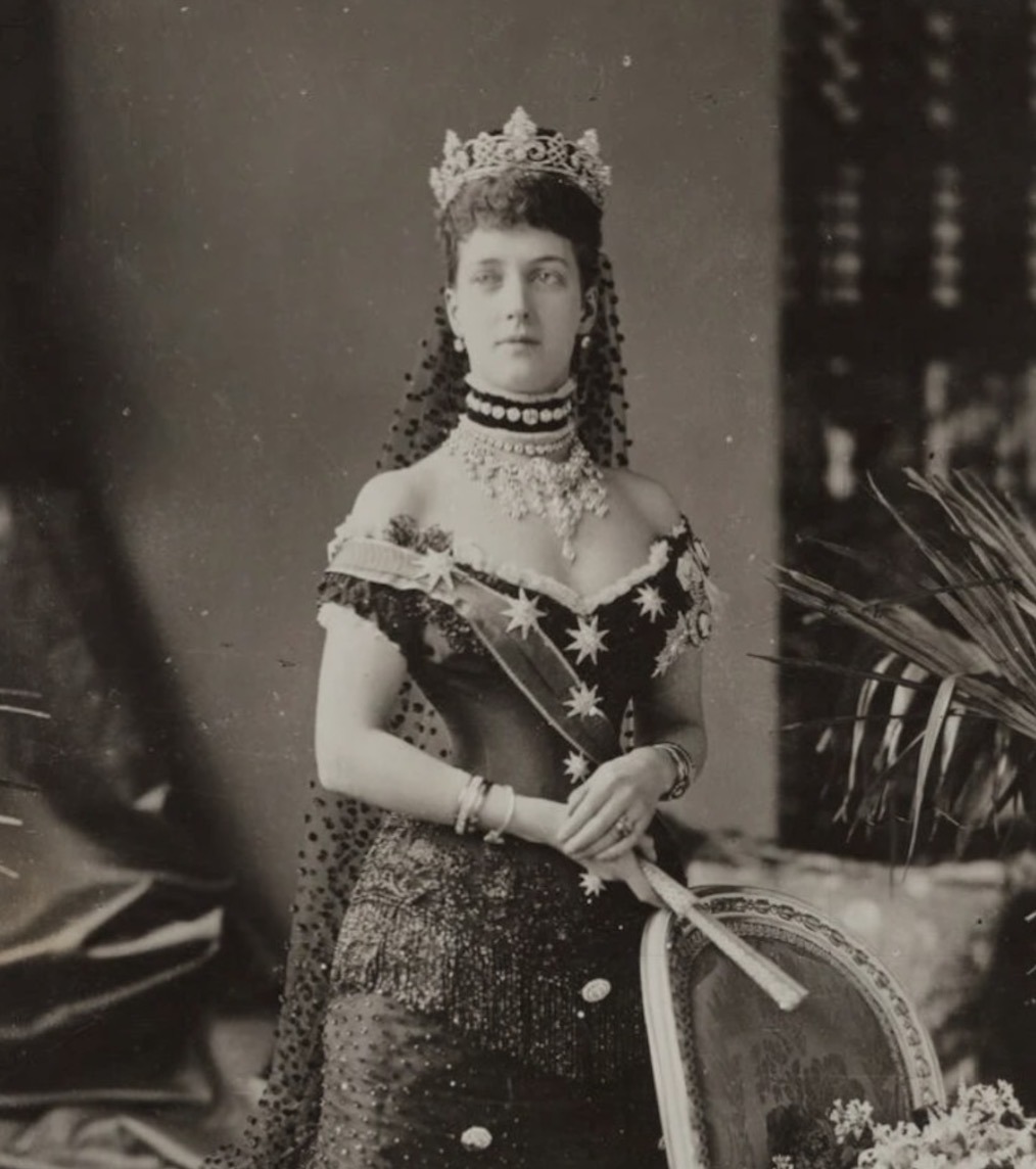 As her primary Tiara for the first 25 years of her marriage until she received the Kokoshnik Tiara and her Amethyst Tiara on her Silver Anniversary in 1888, the Princess of Wales wore the Diamond Tiara, as well as the Pearl and Diamond Parure, in various versatile ways, which included wearing the individual elements on her outfits, like for the Waverley Ball in London in 1871, or replacing elements with Diamond Stars.