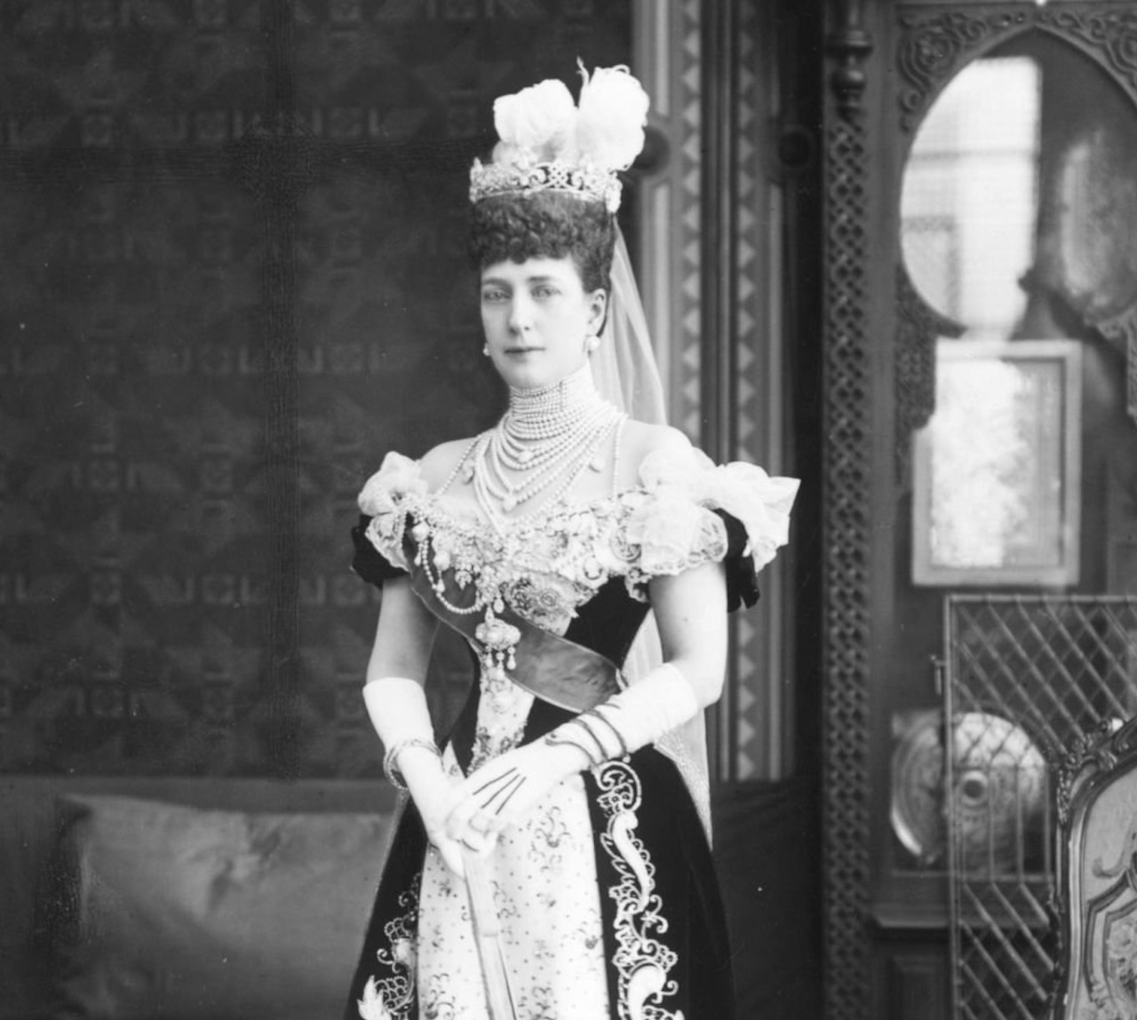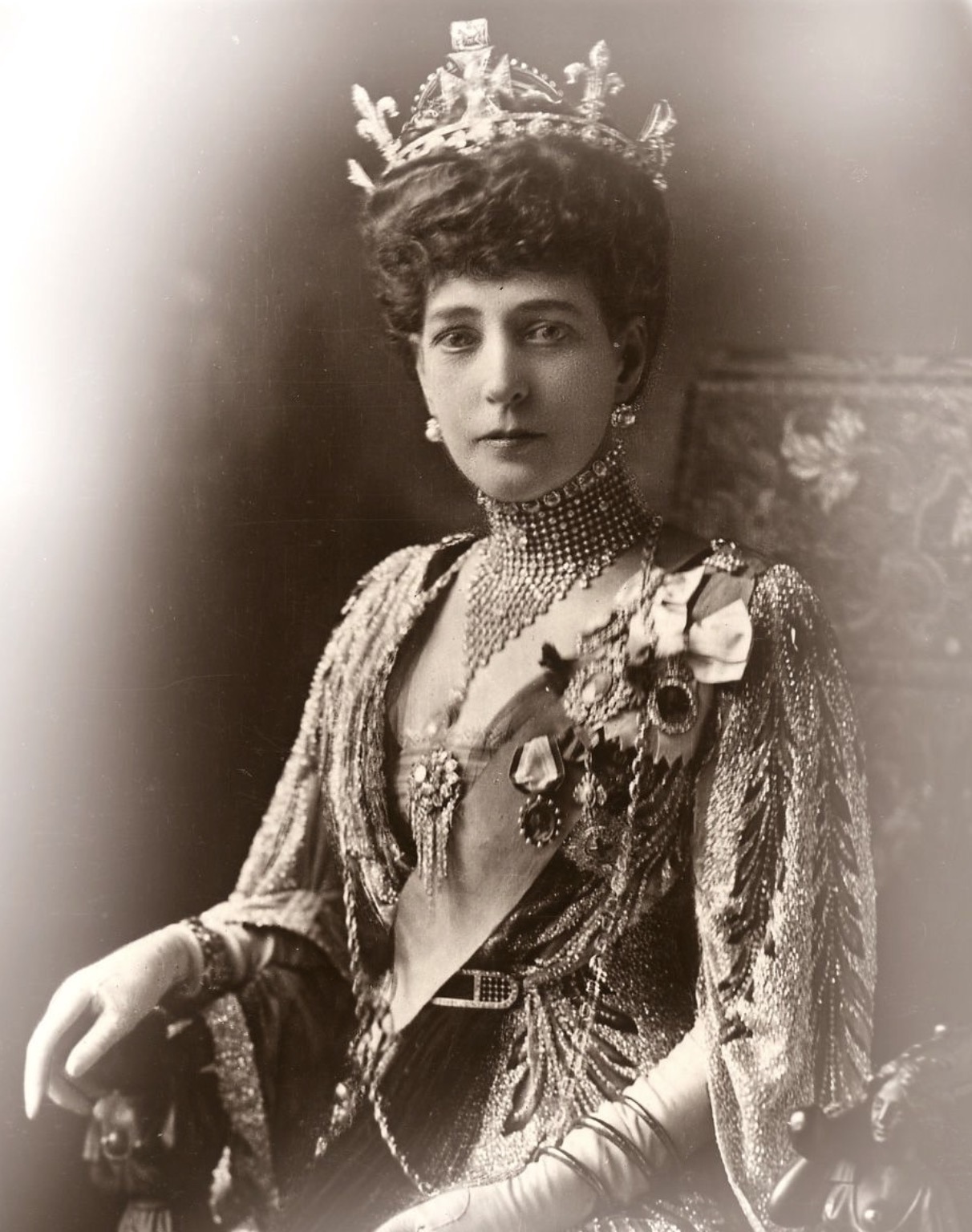 While Queen Alexandra’s jewels have largely remained in the ownership of the royal family, and many of them are worn by Her Majesty The Queen today, a large proportion of her wardrobe was dispersed and sold after the death of her unmarried daughter, Princess Victoria.
