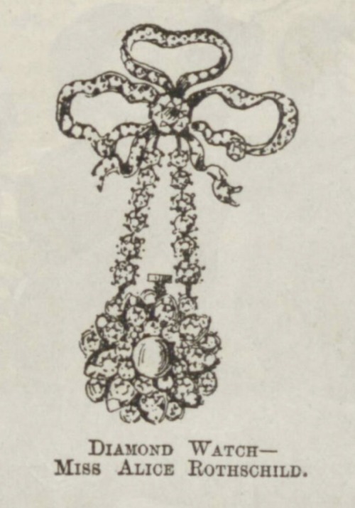 Among of those forty-four Brooches was this detachable Diamond Watch in the shape of the rose of York suspended from a scrolled Diamond Bow, which was given by the Heiress Alice de Rothschild.