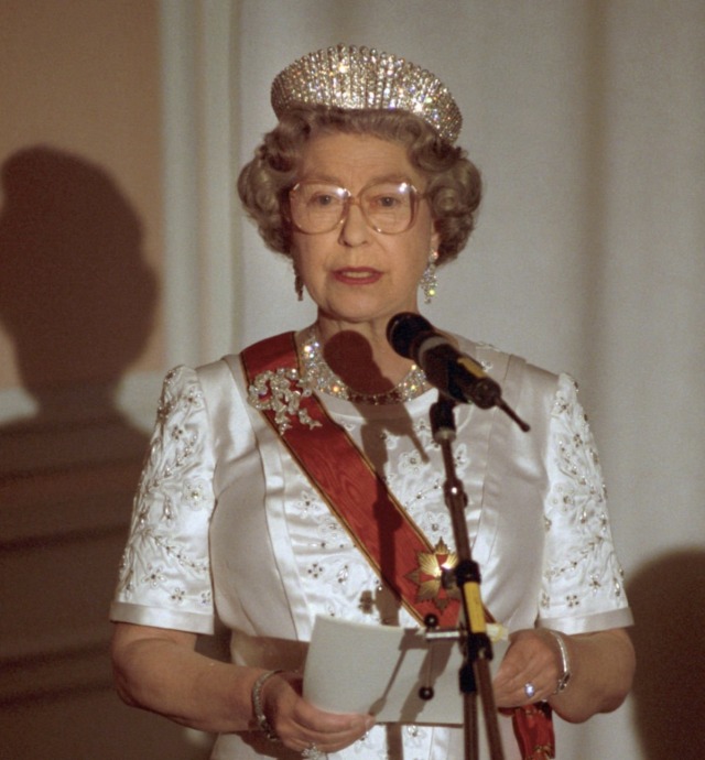 The Queen continued to wear the Lover’s Knot Brooch for some of the more important occasions, like the Dutch State Visit to Britain in 1972, in Mauritius in 1972, the Luxembourg State Visit to Britain in 1972, the State Visit to Japan in 1975, the Dutch State Visit to Britain in 1982, the State Visit to Sweden in 1983, the Spanish State Visit to Britain in 1986, the State Visit to Jordan in 1986, and the Ghillies Ball at Balmoral in 1991 among others, including her last State Visit to the United States in 2007.