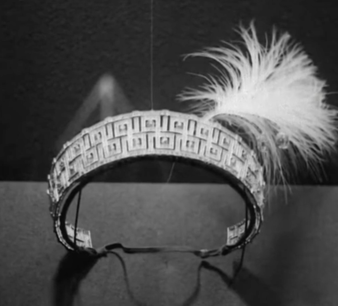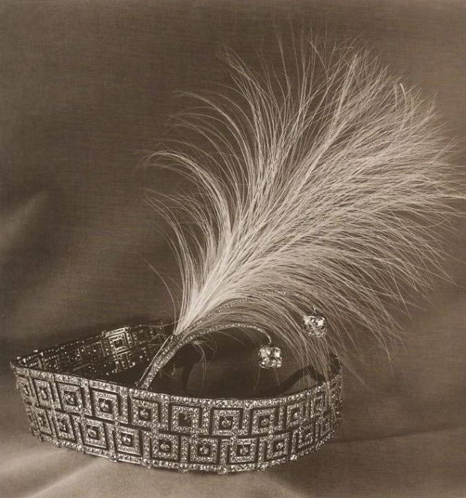 A magnificent Diamond Tiara of two rows of looped Diamond Meanders, topped by a magnificent Diamond Aigrette with two large Diamonds, as well as an osprey feather, which was created in the late 1800s.