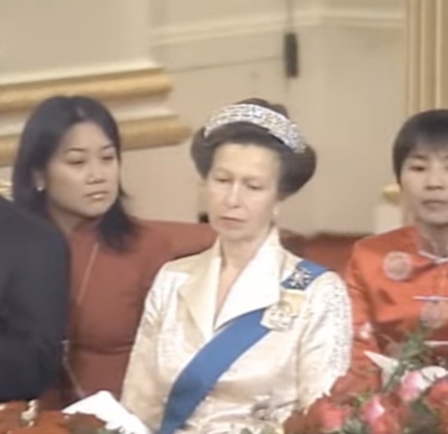 At a Chinese State Banquet in 2005, Princess Anne wore a mystery Diamond Tiara, which seems to be the Queen Mother’s Double Meander Tiara.