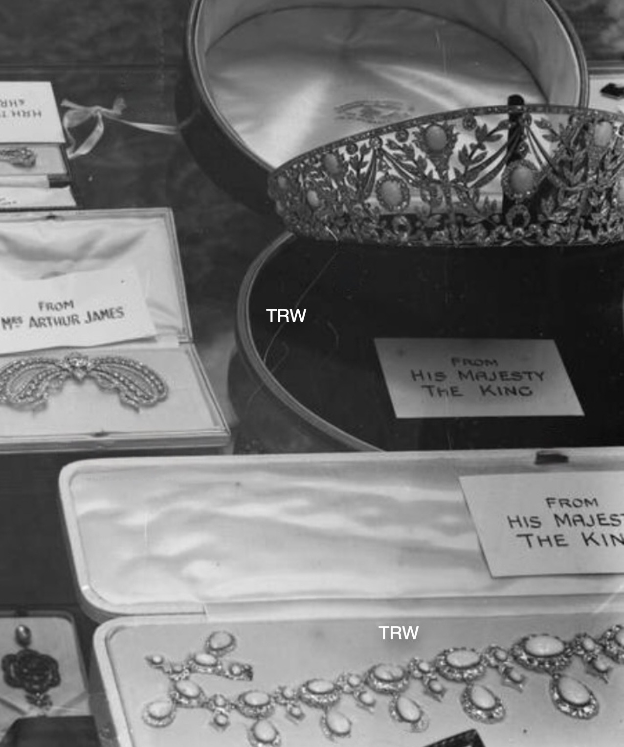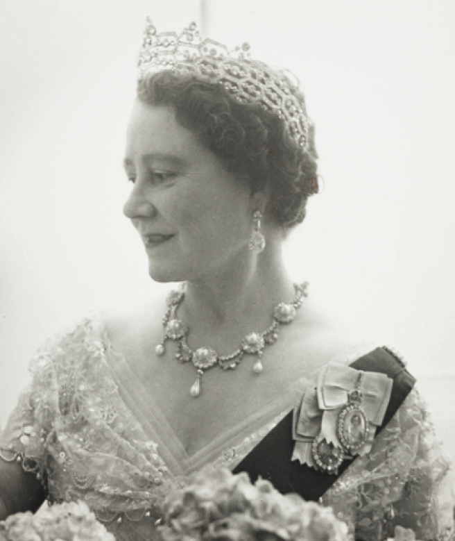 When Lady Elizabeth Bowes-Lyon married the Duke of York in 1923King George V gifted the bride with a grand Persian Turquoise and Diamond Parure composed of a Tiara, a grand Necklace, a pair of Earrings and a Brooch, which had been acquired at Garrard. Like many of the other wedding gifts, the Parure went on public display at St James’ Palace.