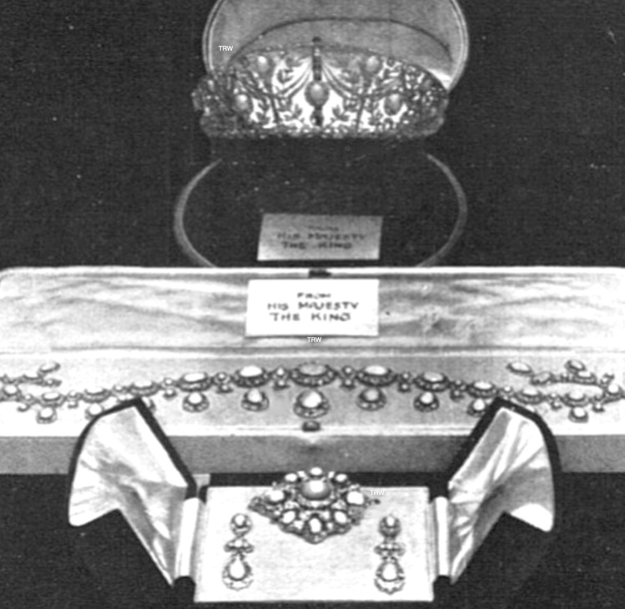 Two years later, the Persian Turquoise Tiara and Parure were worn by the Duchess of York for the Wedding Gala of Crown Prince Olav of Norway and Princess Martha of Sweden at the Nationaltheatret (National Theatre) in Oslo.