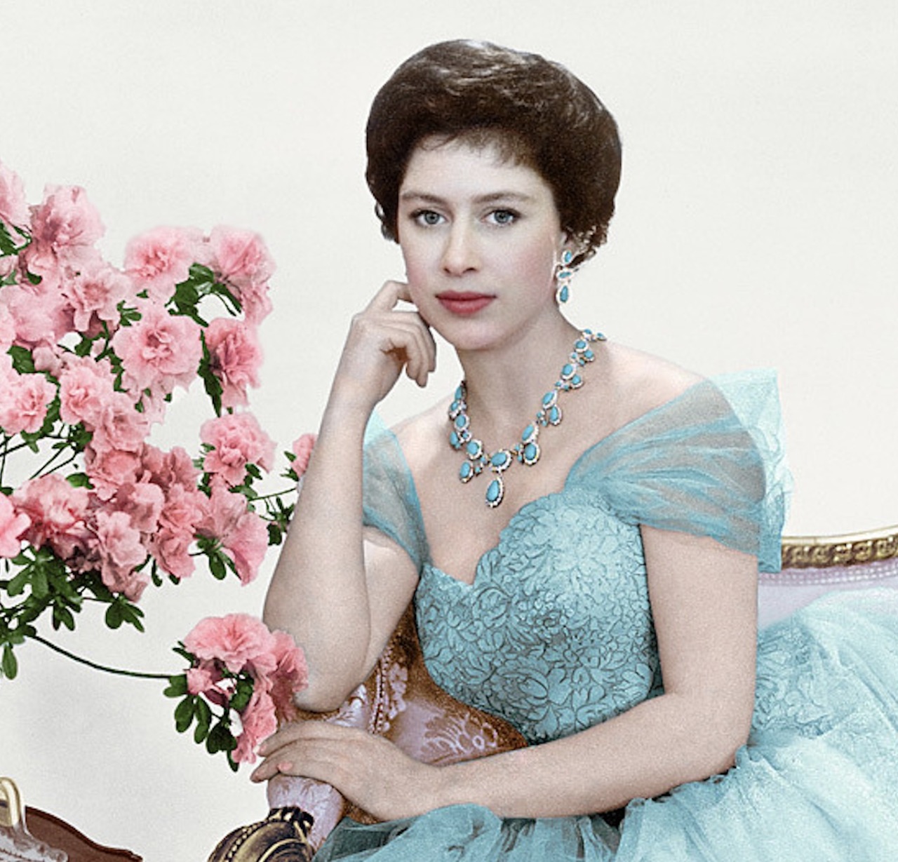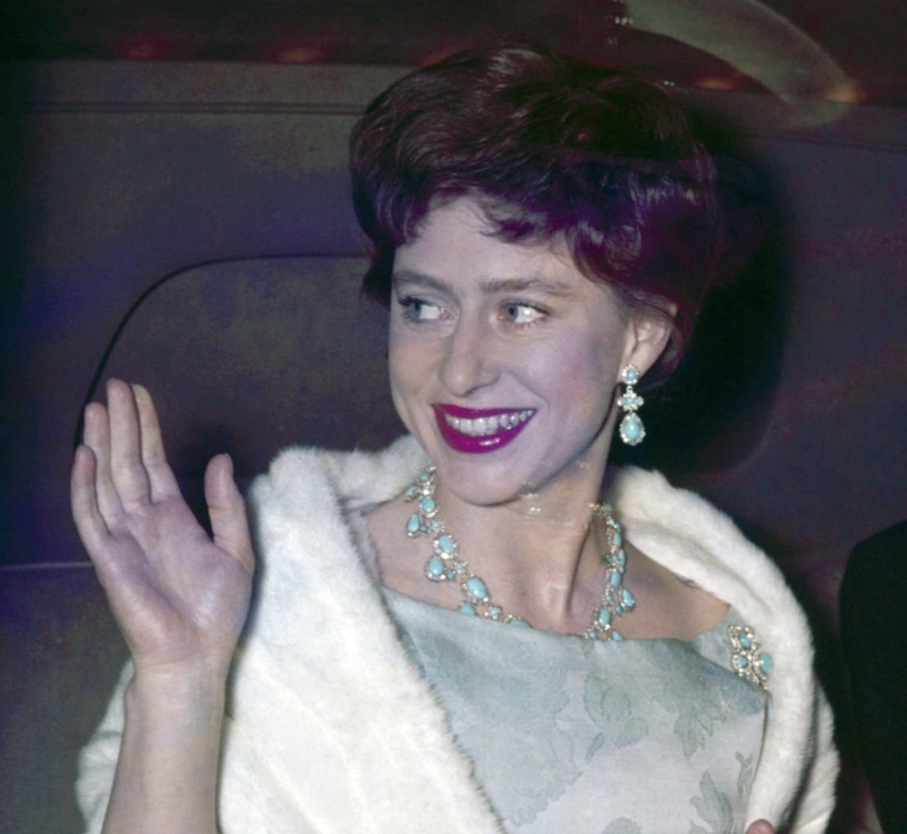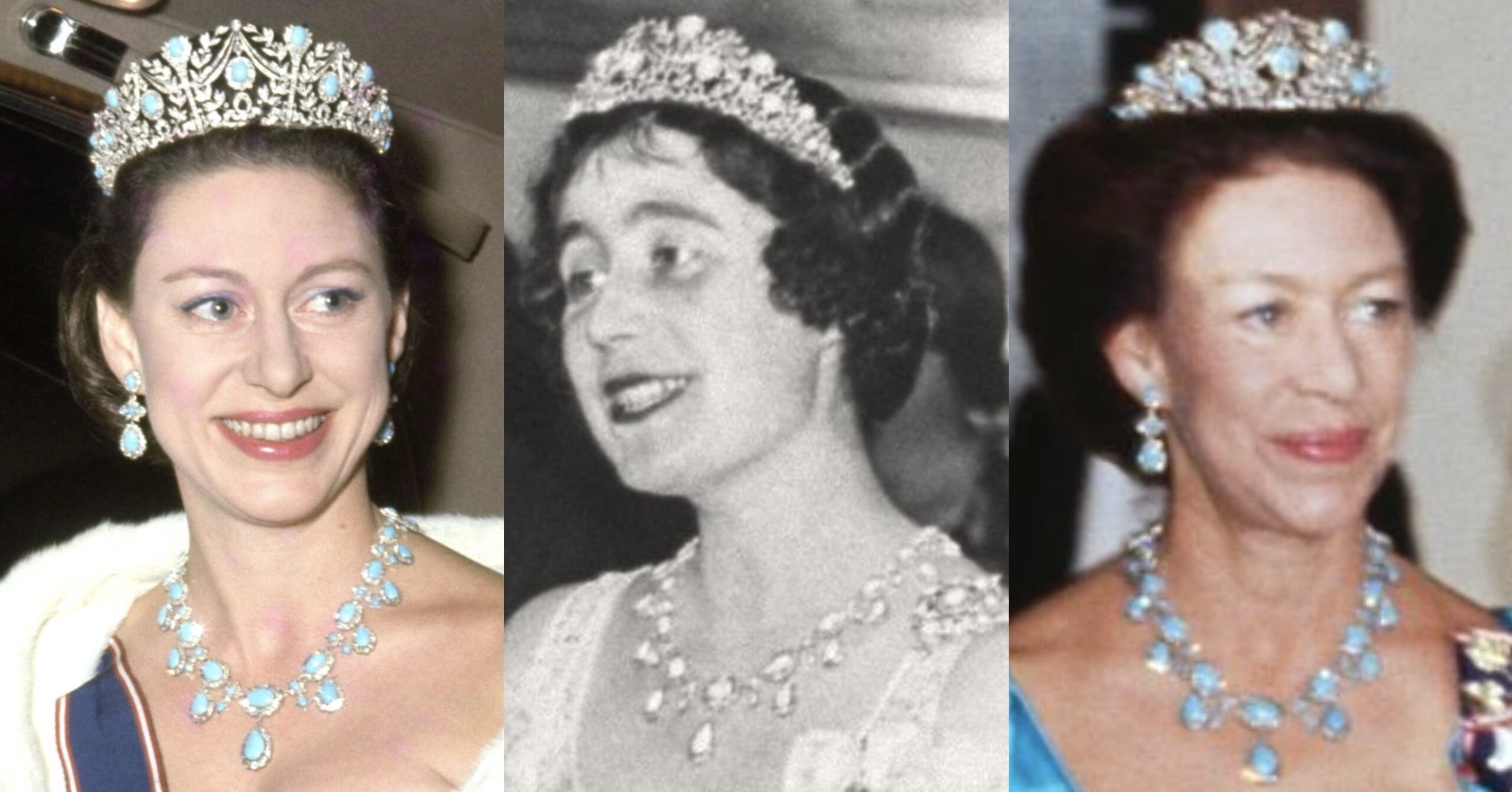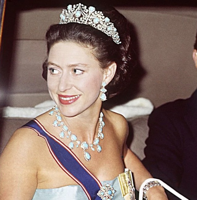 In 1951, Queen Elizabeth gave her Persian Turquoise Parure to her younger daughter, Princess Margaret, as a 21st Birthday gift who notably debuted the Parure at the Royal Film Performance in 1952, one of the first gala events in the reign of the new Queen.