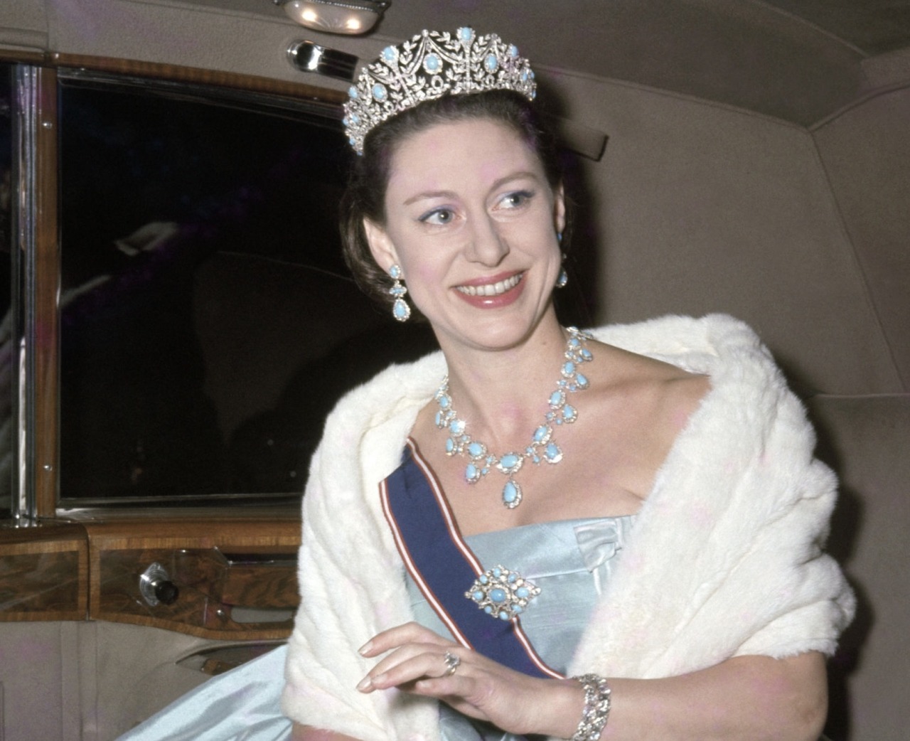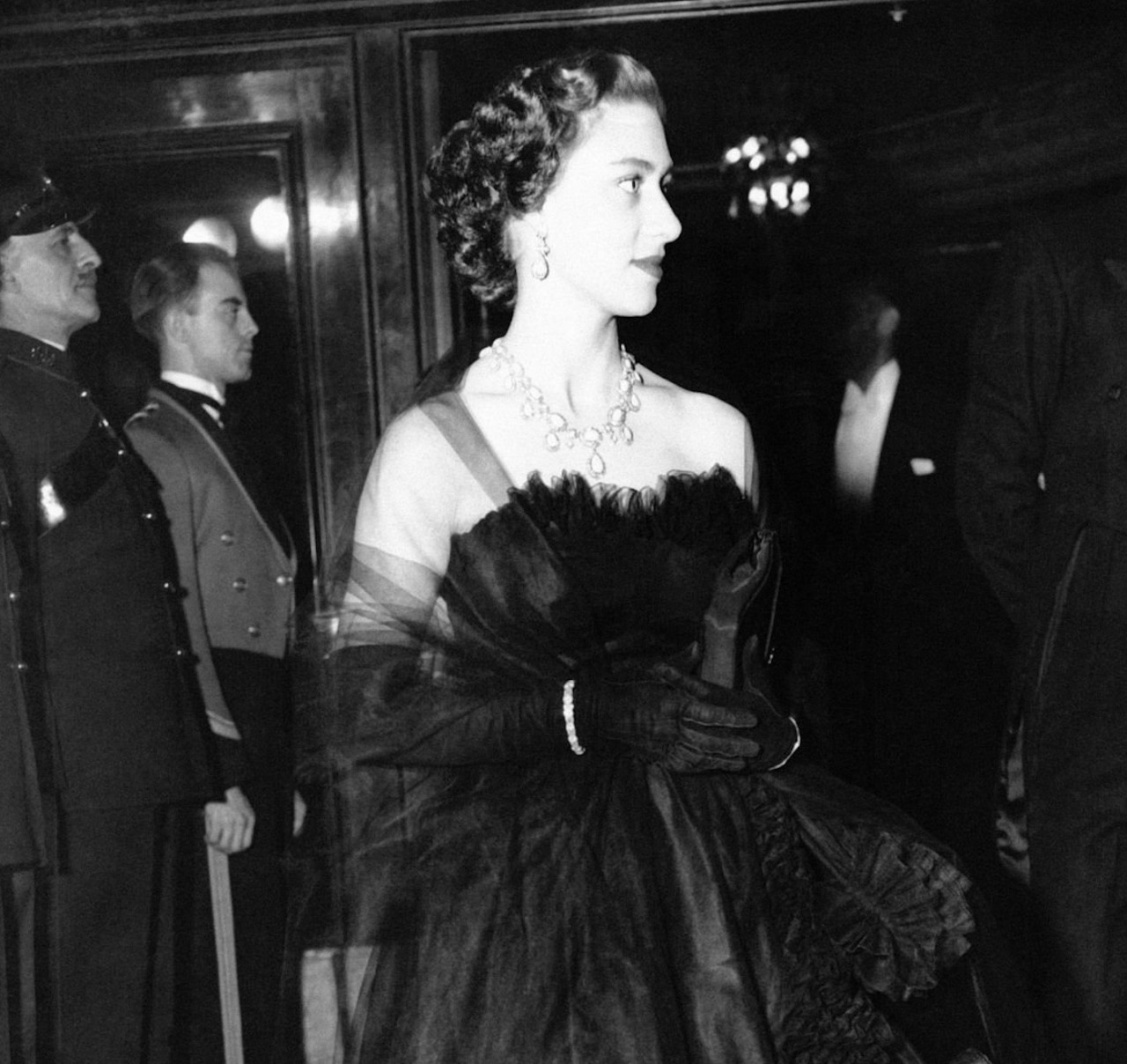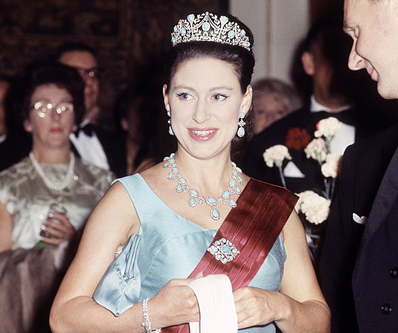 In 1951, Queen Elizabeth gave her Persian Turquoise Parure to her younger daughter, Princess Margaret, as a 21st Birthday gift who notably debuted the Parure at the Royal Film Performance in 1952, one of the first gala events in the reign of the new Queen.