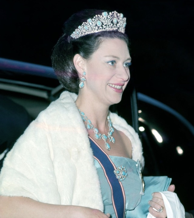 The Persian Turquoise Parure was also worn by Princess Margaret for the the Royal Film Performance in 1967, and the Royal Danish Ballet Gala in London in 1968 among numerous other Galas.