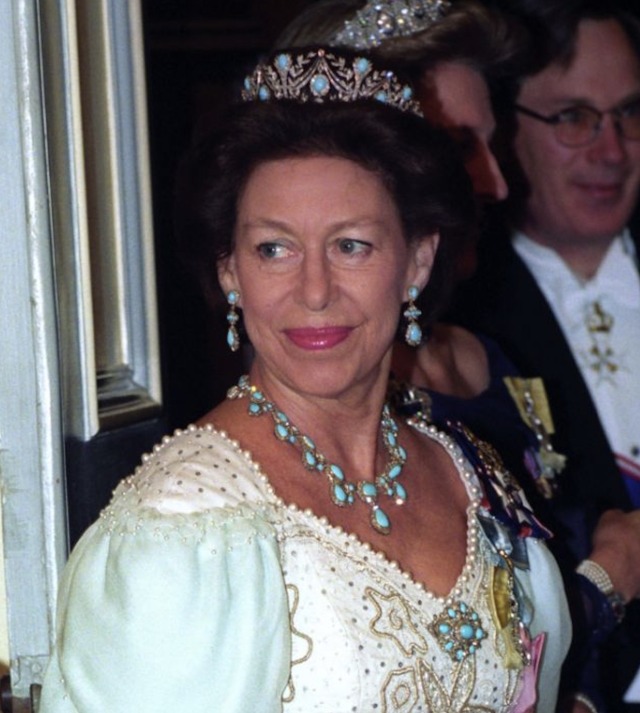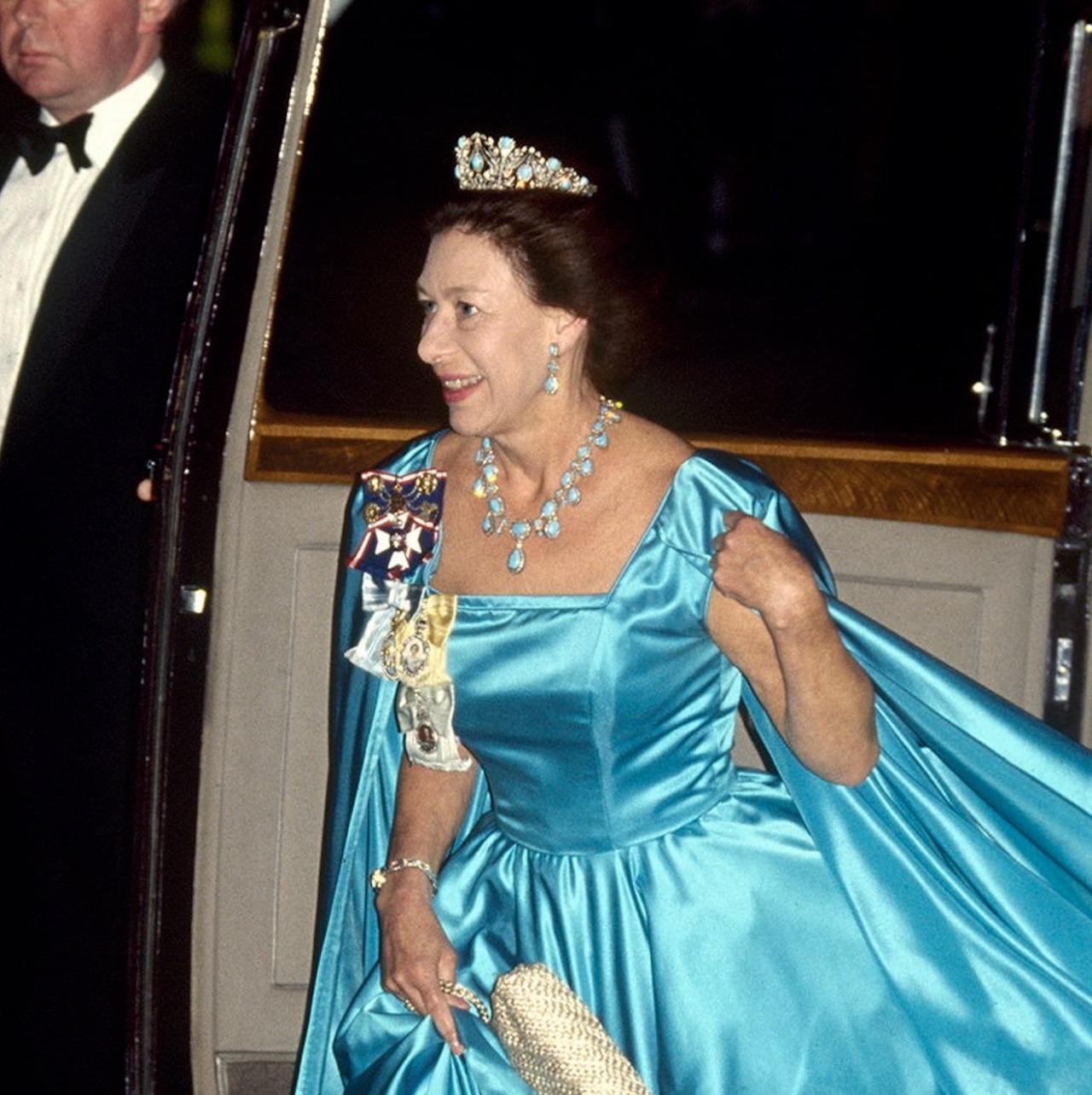 Princess Margaret continued to wear pieces of the Persian Turquoise Parure into the 1980s and 1990s, for several Galas and Banquets, as well as the Queen Mother’s 90th Birthday Gala in 1990, into the later years of her life.