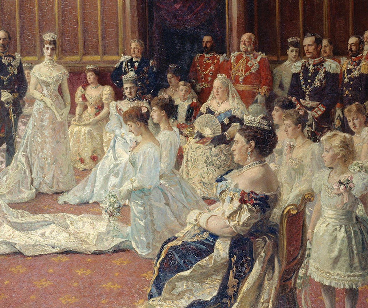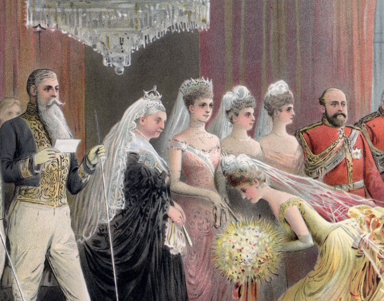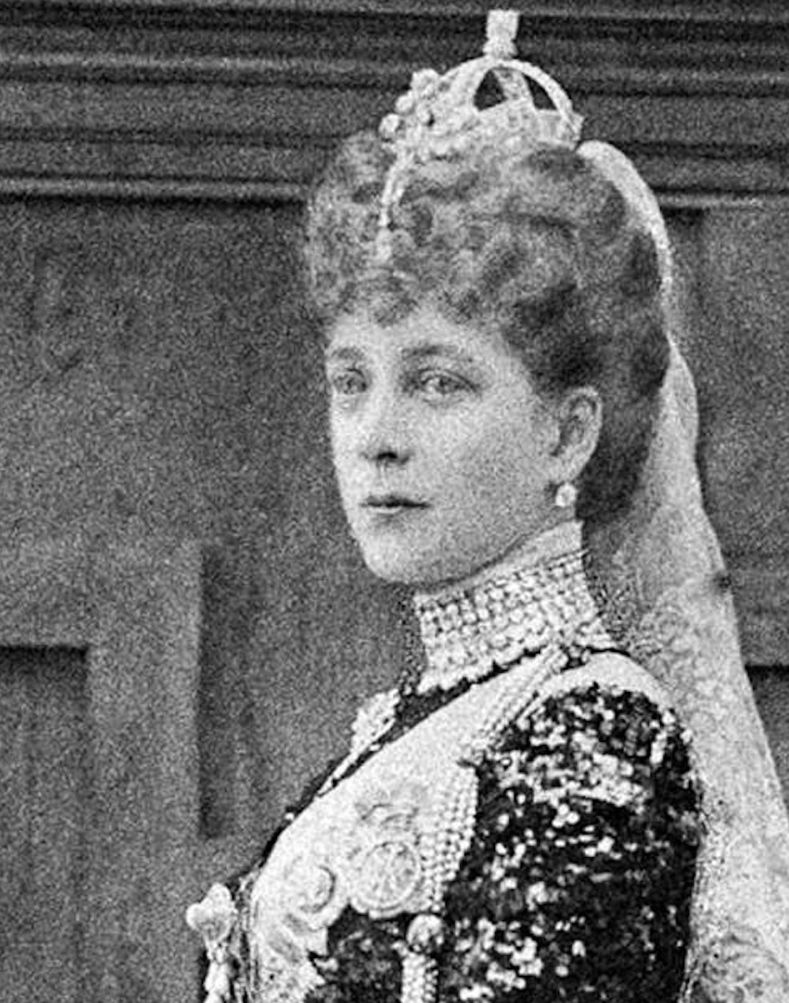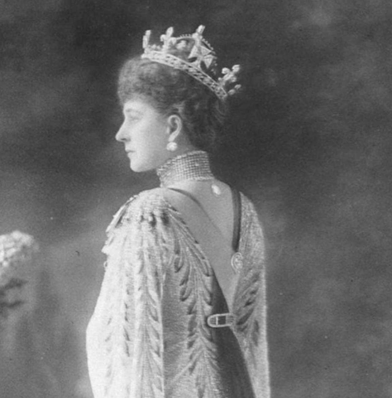 Queen Alexandra retained the Small Diamond Crown in her possession upon being widowed, wearing it with her Diamond Circlet for the Wedding of Prince Arthur of Connaught and her granddaughter, Princess Alexandra, Duchess of Fife, in 1913.
