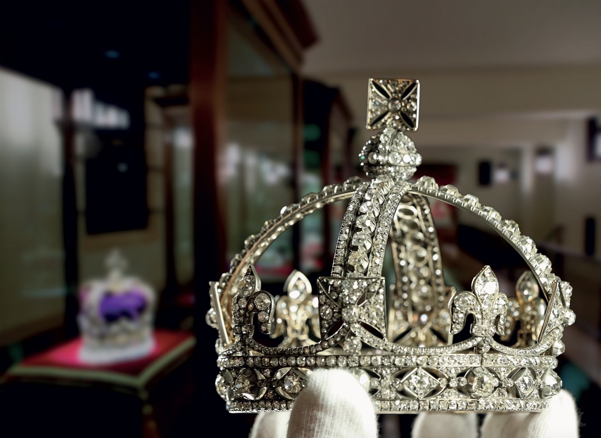 The Crown was not pictured on Queen Mary or Queen Elizabeth, and in 1937, King George VI deposited it in the Jewel House at the Tower of London, where it remains on public display with the rest of the Crown Jewels.