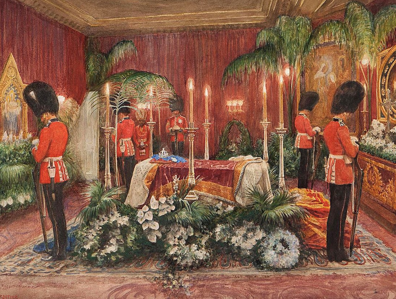 By the time of her death, the small crown had become so closely associated with the image of the Queen, that it was placed on her coffin at Osborne.
