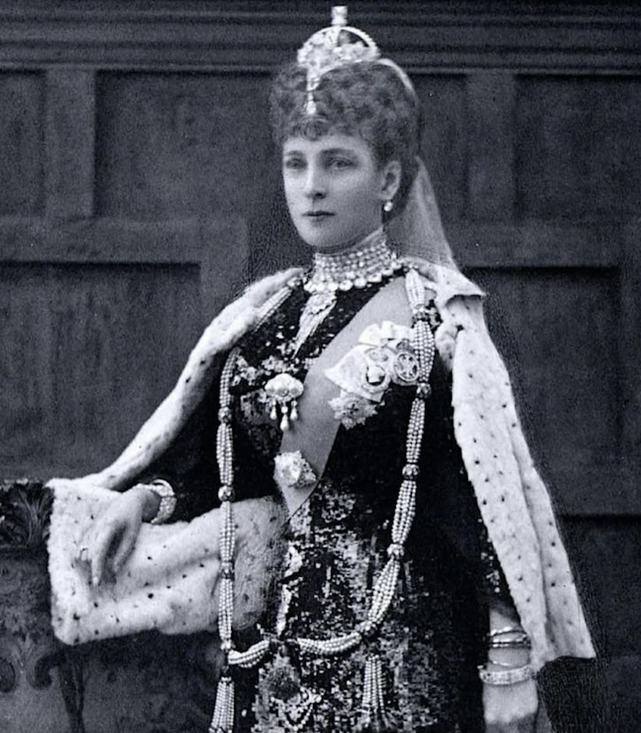 The Diamond Crown was also worn by Queen Alexandra for the State Openings of Parliament in 1902 and 1907 among a few others, paired with several of the most magnificent heirlooms of the Crown.