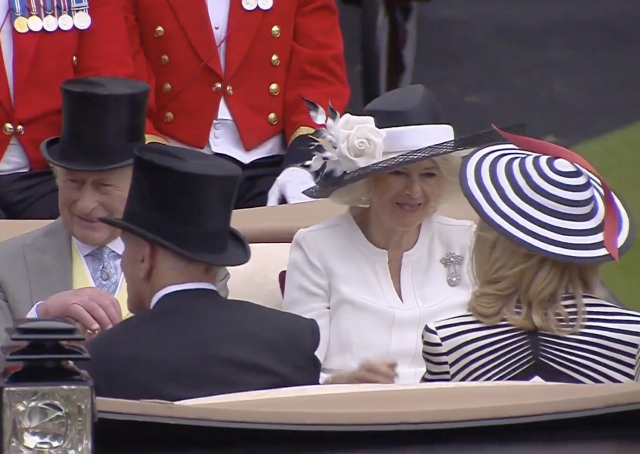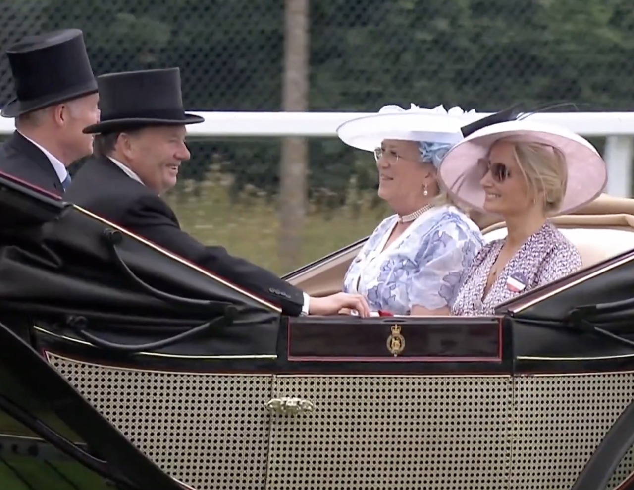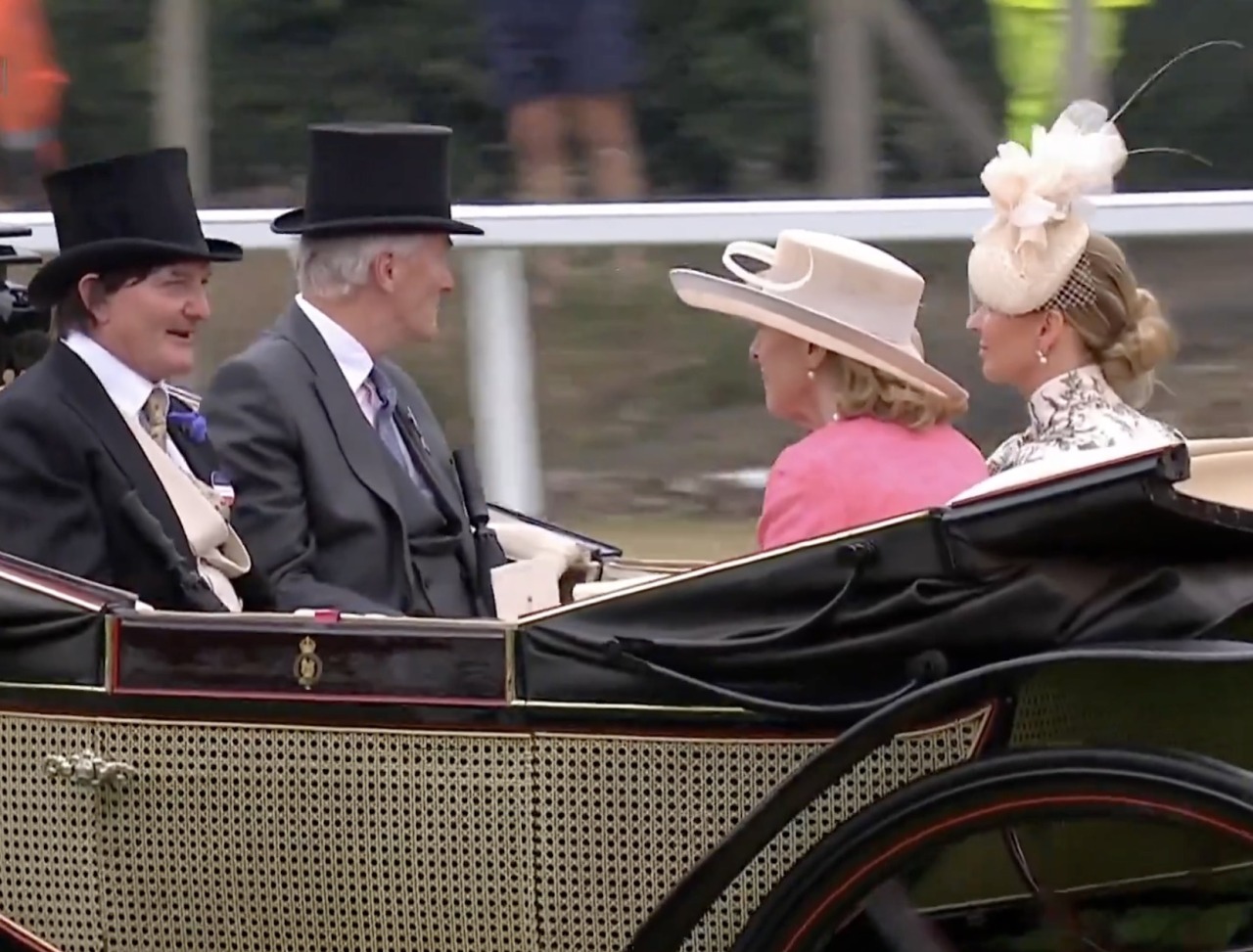 A Royal Procession of four carriages traveled from Windsor Castle to the Ascot Racecourse in horse-drawn landaus, before the Royal Family and their guests spent the day in the Royal Enclosure.