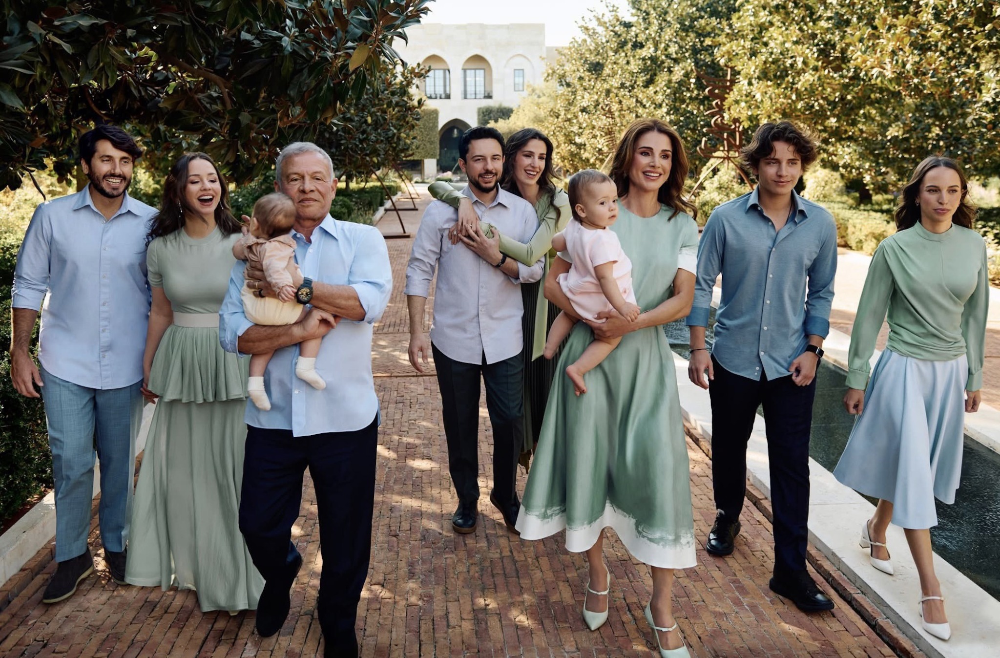 King Abdullah II and Queen Rania of Jordan with Crown Prince Hussein, Princess Rajwa Al Hussein, Princess Iman, Princess Salma and Prince Hashem.