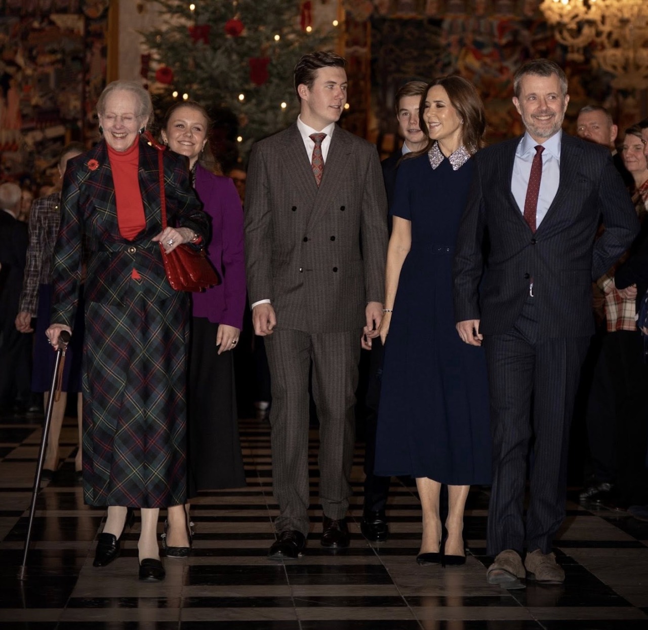 King Frederik X and Queen Mary of Denmark with Queen Margrethe II, Crown Prince Christian, Princess Isabella, Prince Vincent and Princess Josephine.