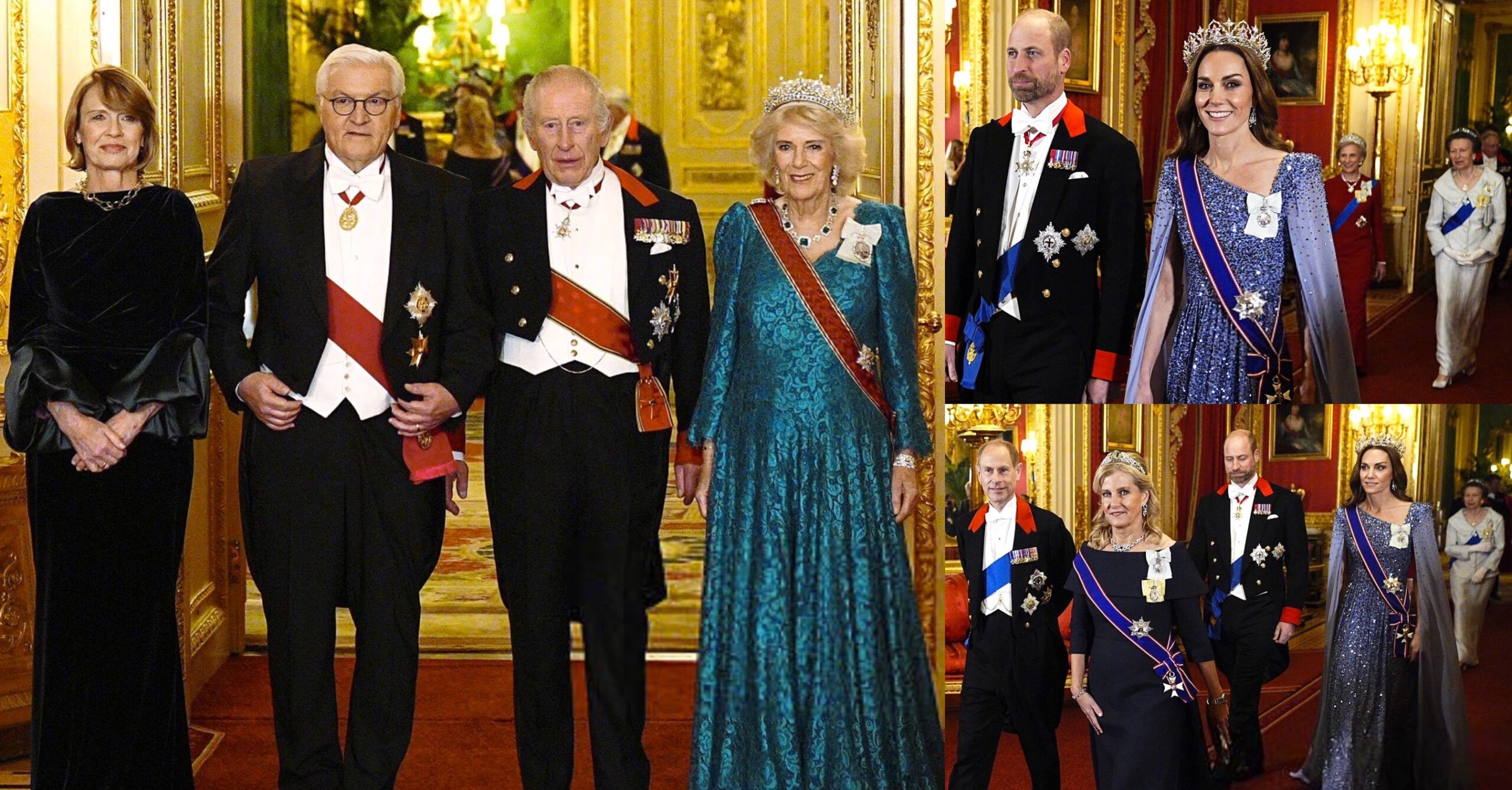 Members of British Aristocracy and High Society joined the Royal Family as King Charles III and Queen Camilla held the State Banquet in honour of the German President and First Lady at St. George’s Hall in Windsor Castle. Queen Camilla, Princess Anne, and the Duchess of Gloucester wore three Tiaras recently returned from Exhibitions at Buckingham Palace and the V&A while the Princess of Wales debuted Oriental Circlet Tiara at the State Banquet at Windsor.