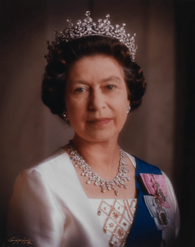 After Queen Mary’s death in 1953, the Diamond Bar Brooch was among the jewels inherited by her granddaughter, Queen Elizabeth II, though she did not wear it publicly until the 1980s, when it was worn for the Royal Windsor Horse Show and the Braemar Games.