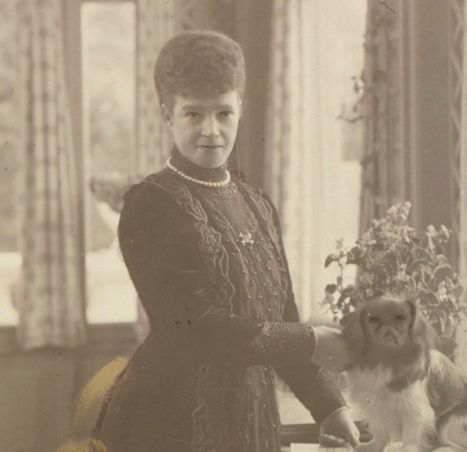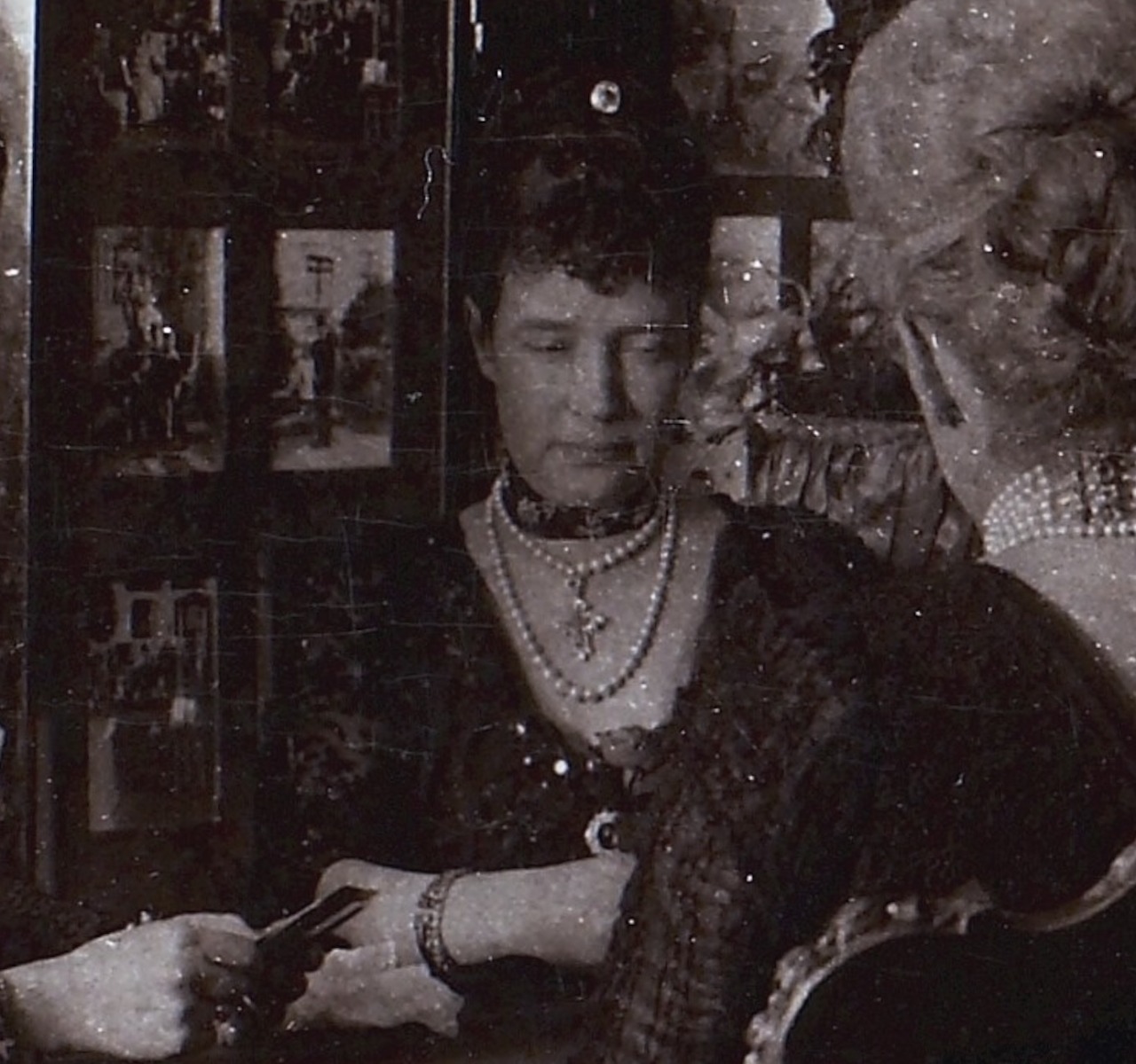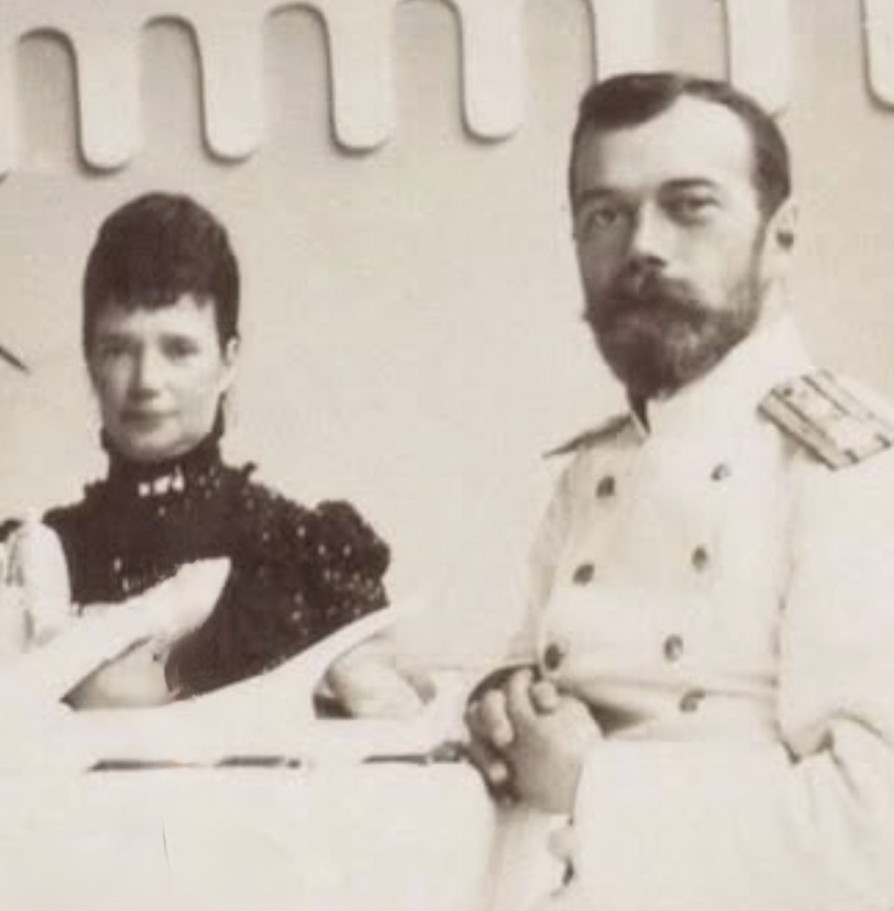 The Dowager Empress wore the Diamond Bar Brooch for a photo with Tsar Nicholas II in June 1899, and also for a photo with her Pearl Brooch taken around the same time.