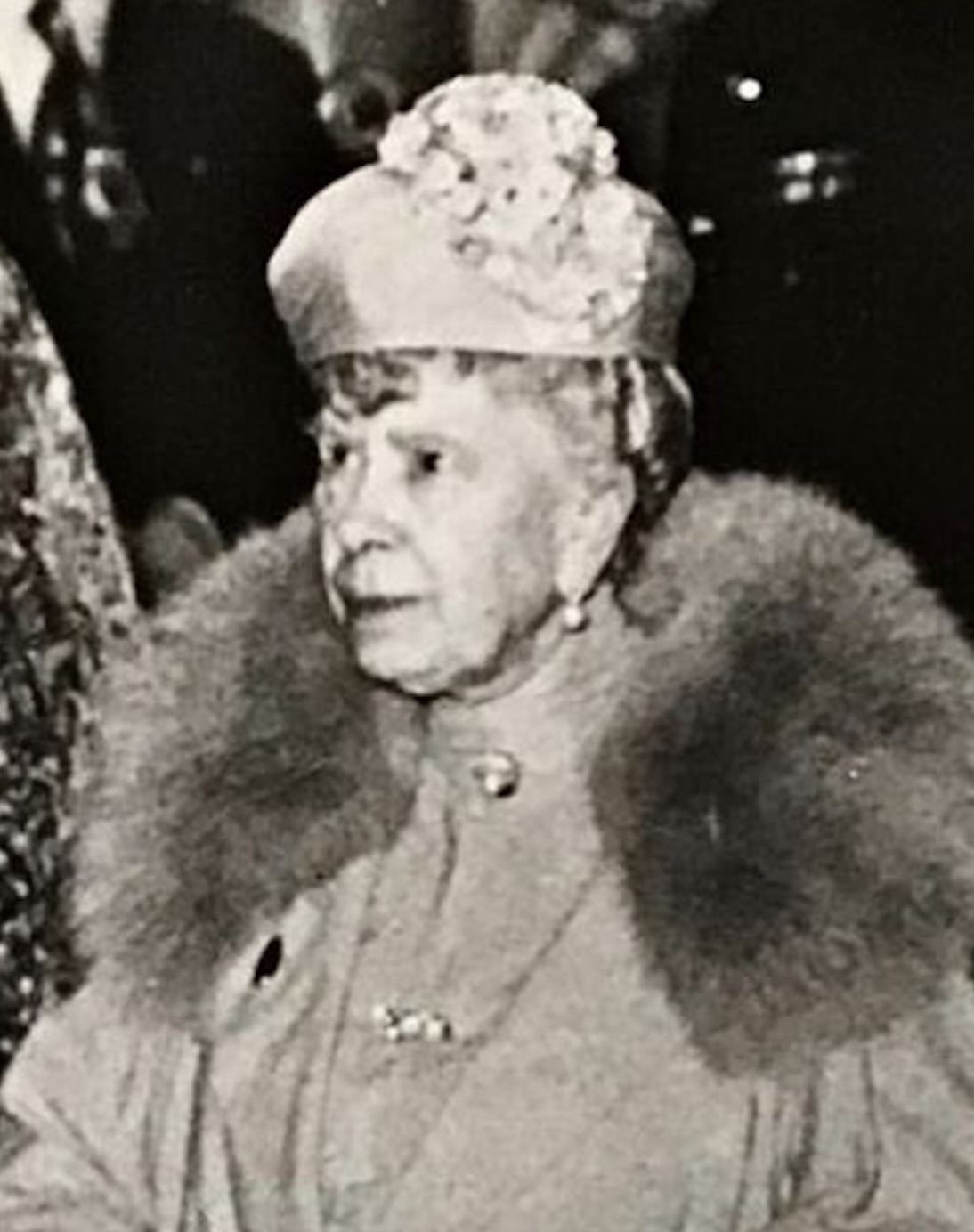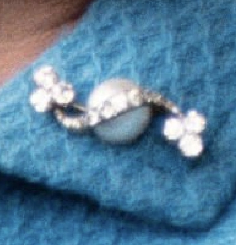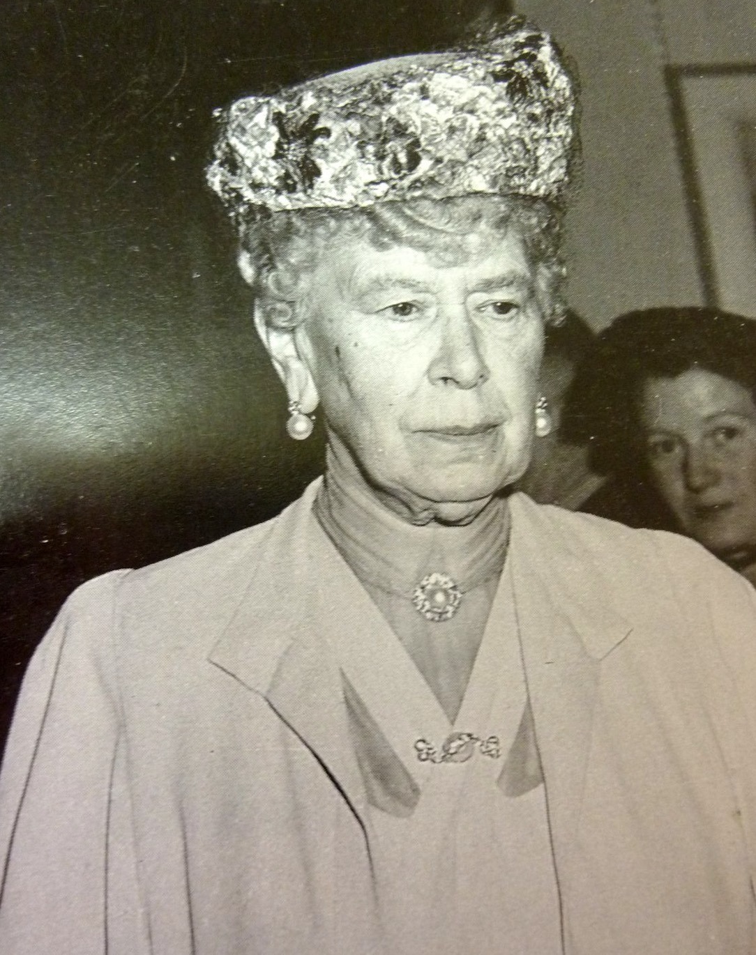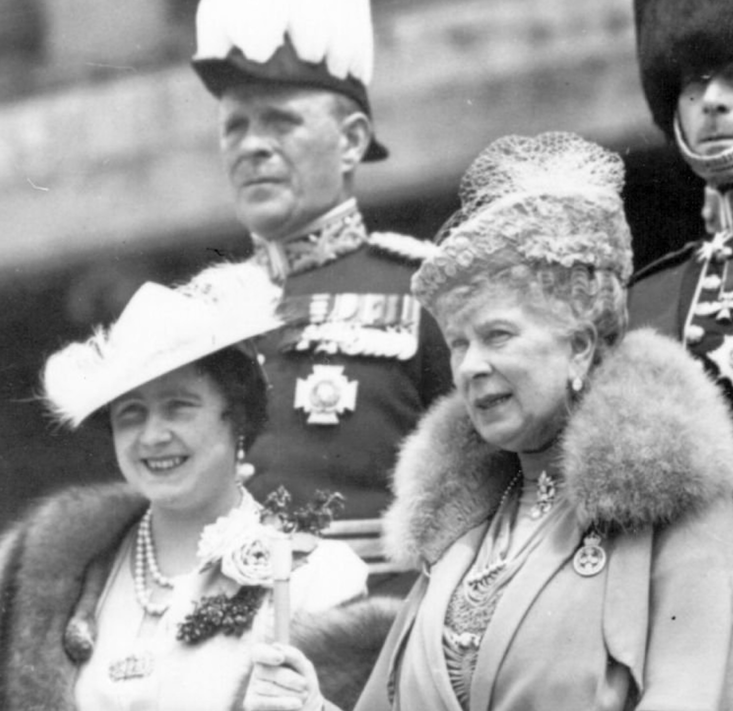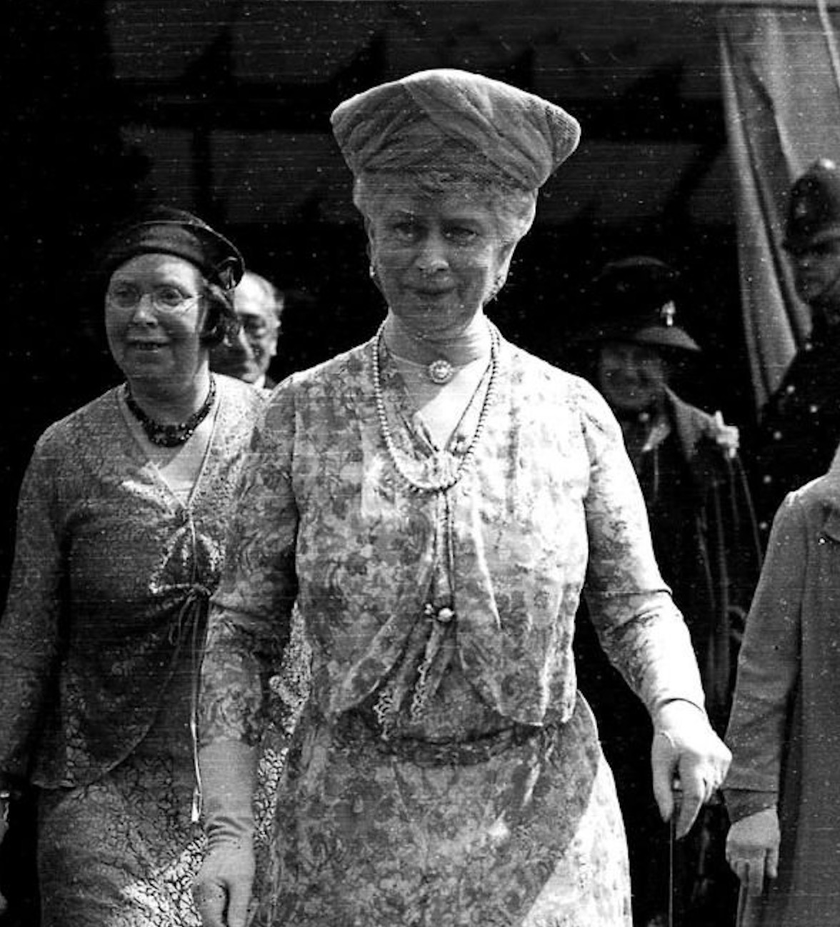 Queen Mary frequently wore the Diamond Bar Brooch on her bodice for daytime events through the 1930s, usually paired with the Cambridge Pearl Brooch.