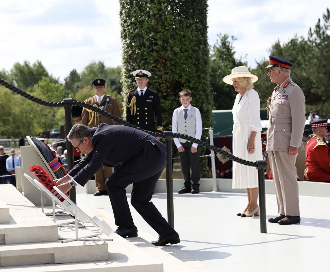 King Charles III and Queen Camilla attended the Victory over Japan (VJ) Day 80th Anniversary Service of Remembrance held by the Royal British Legion at the National Memorial Arboretum.