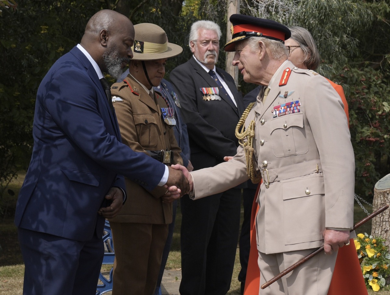 Following the service, the King viewed memorials and met members of VJ associations, including the Burma Star Memorial Fund, The Chindit Society, Far East Prisoners of War and Children of Far East Prisoners of War, at the Far East Corner of the National Memorial Arboretum.