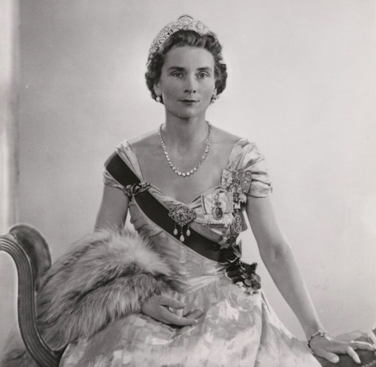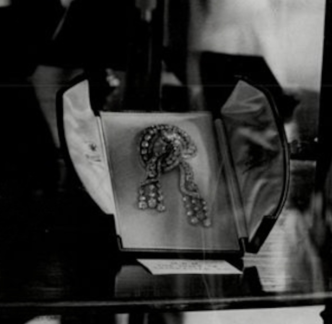 King George and Queen Mary gave Lady Alice a large selection of Pearl and Diamond Jewels, which included a Diamond Rivière and Princess Helena’s Diamond Corsage Brooch: