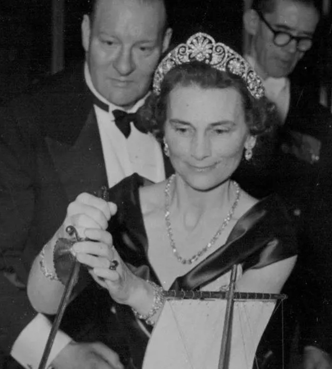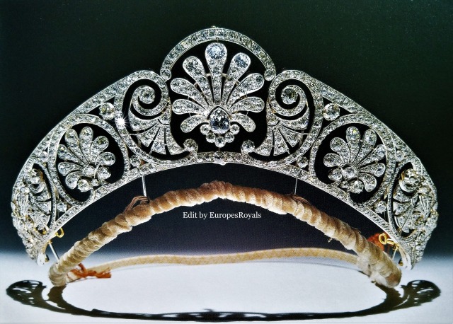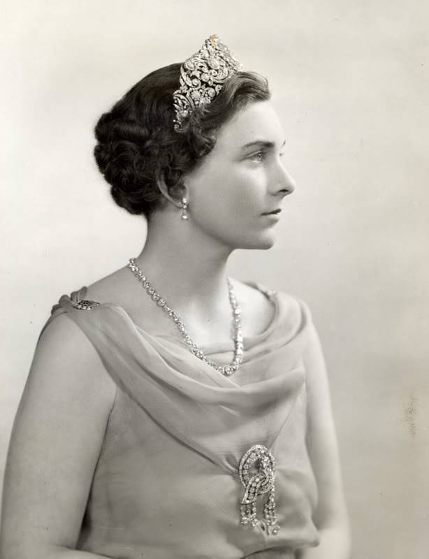Prince Henry also gave another Diamond Tiara ‘formed by a band of leafage design and scrolls and surmounted with a graduation of round and drop shaped diamond collets’, which was often worn by the Duchess in the late 1930s but hasn’t been seen ever since.