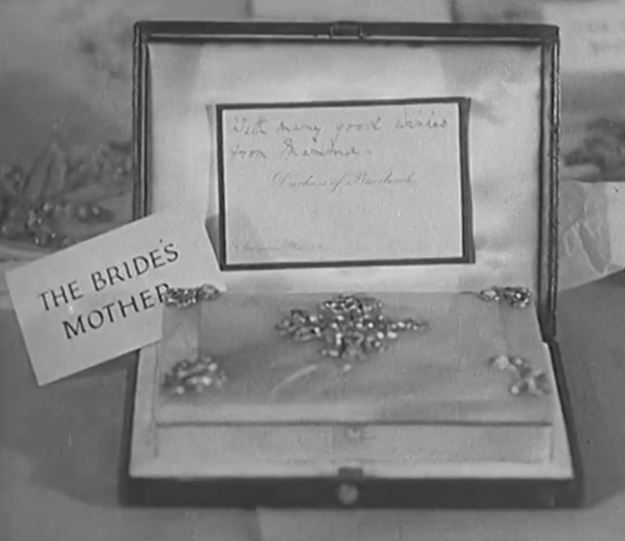 Prince Henry gave many magnificent Wedding Gifts, which included  a Art Deco Diamond Bandeau Tiara which could be worn with a separate Art Deco Emerald and Diamond Brooch, complimented by a set of diamond and emerald clips presented by the groom’s siblings.