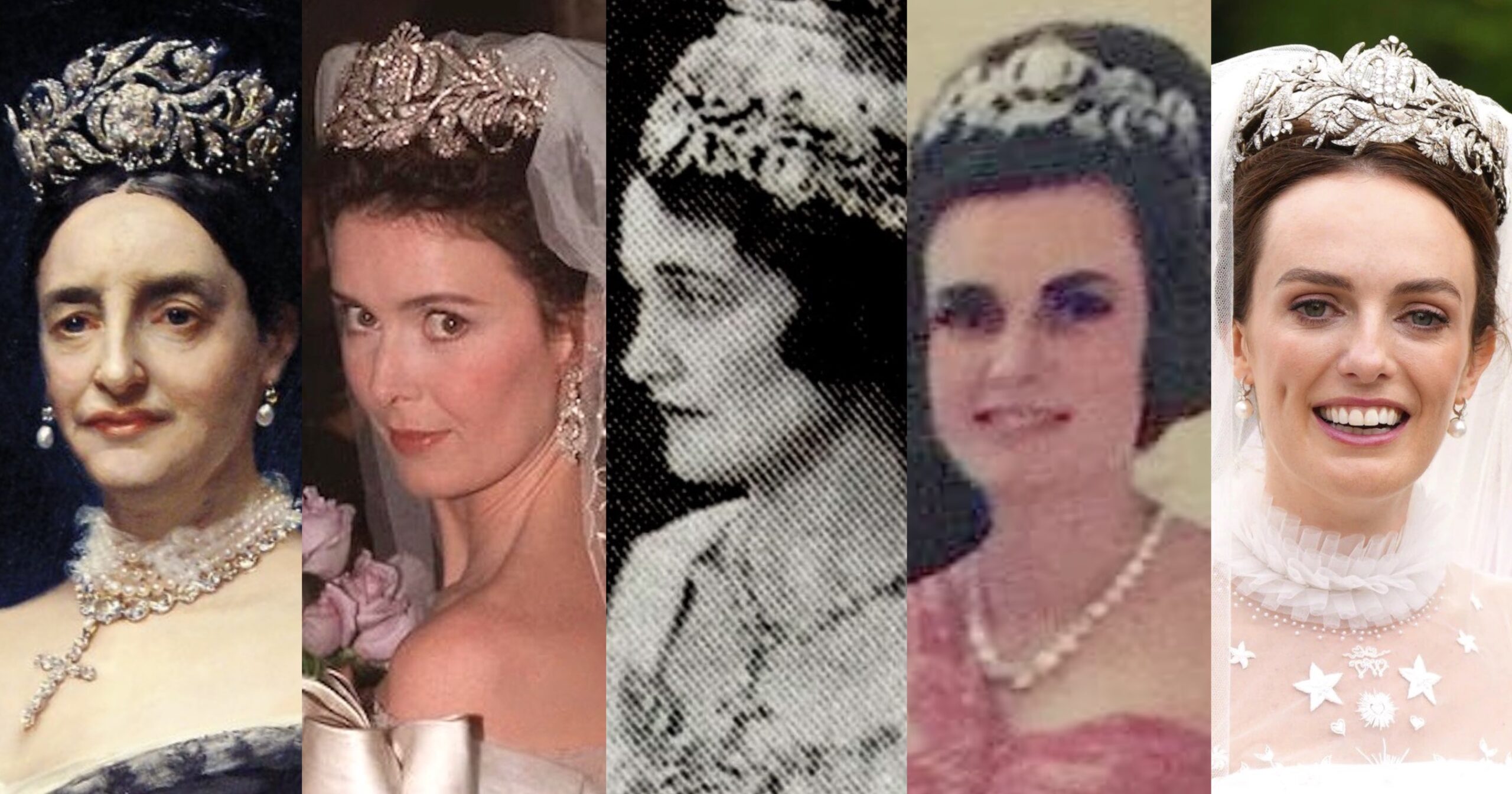 The 7th Duchess of Rutland, was pictured wearing the family tiara in a portrait and in a painting during the 1880s and 1890s, along with another family heirloom, the Diamond Rivière with a Diamond cross pendant.