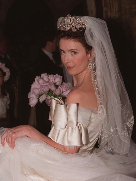 The current Duchess seems to have worn another Diamond Floral Tiara for her wedding to the 11th Duke in 1992, as she recalled when she talked to Carol Woolton.