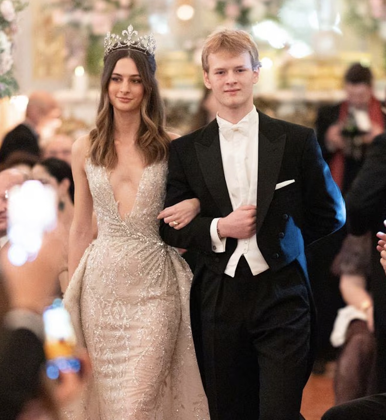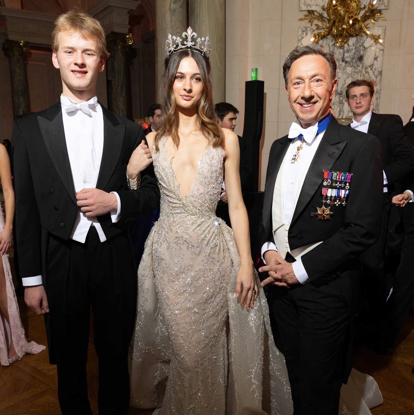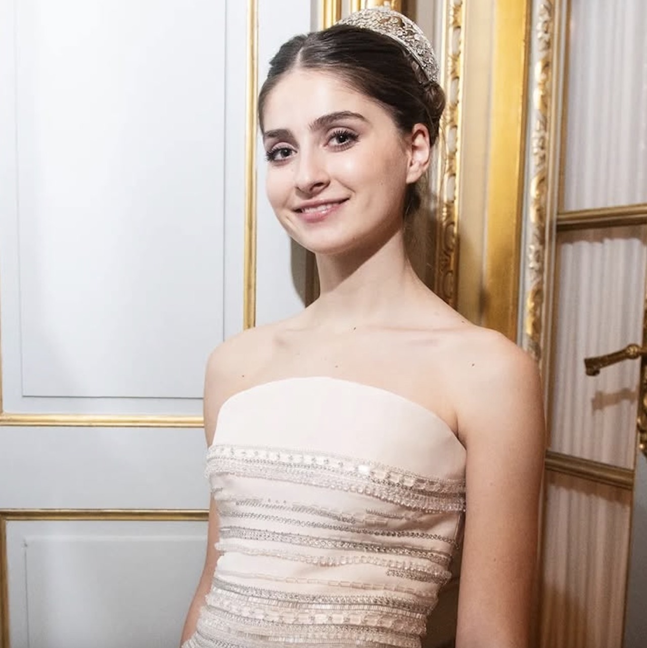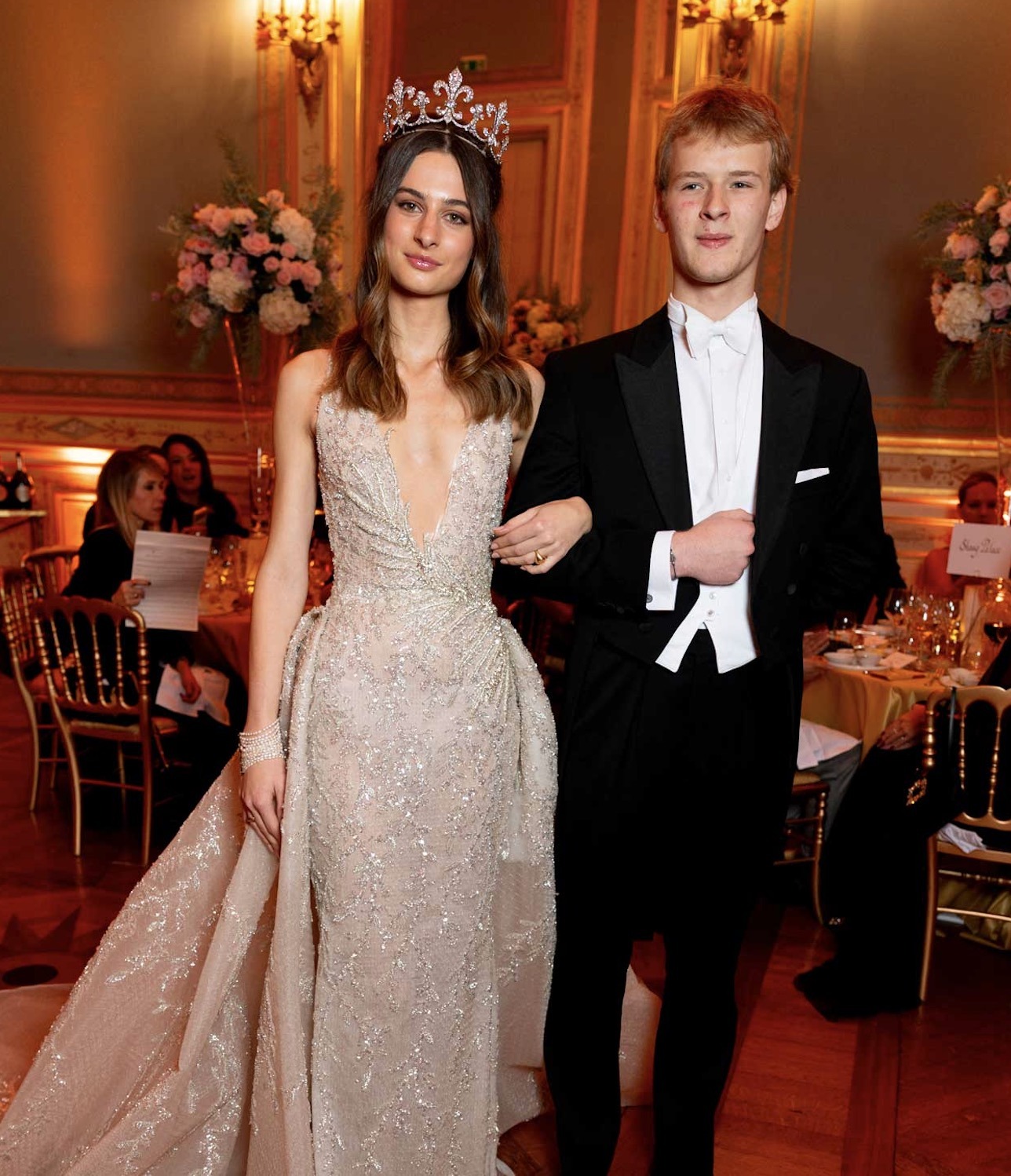 Gabrielle Janssens de Balkany took centre stage in an ethereal white number by Luisa Beccaria. The subtly rhinestoned dress was elevated with a glittering diadem.