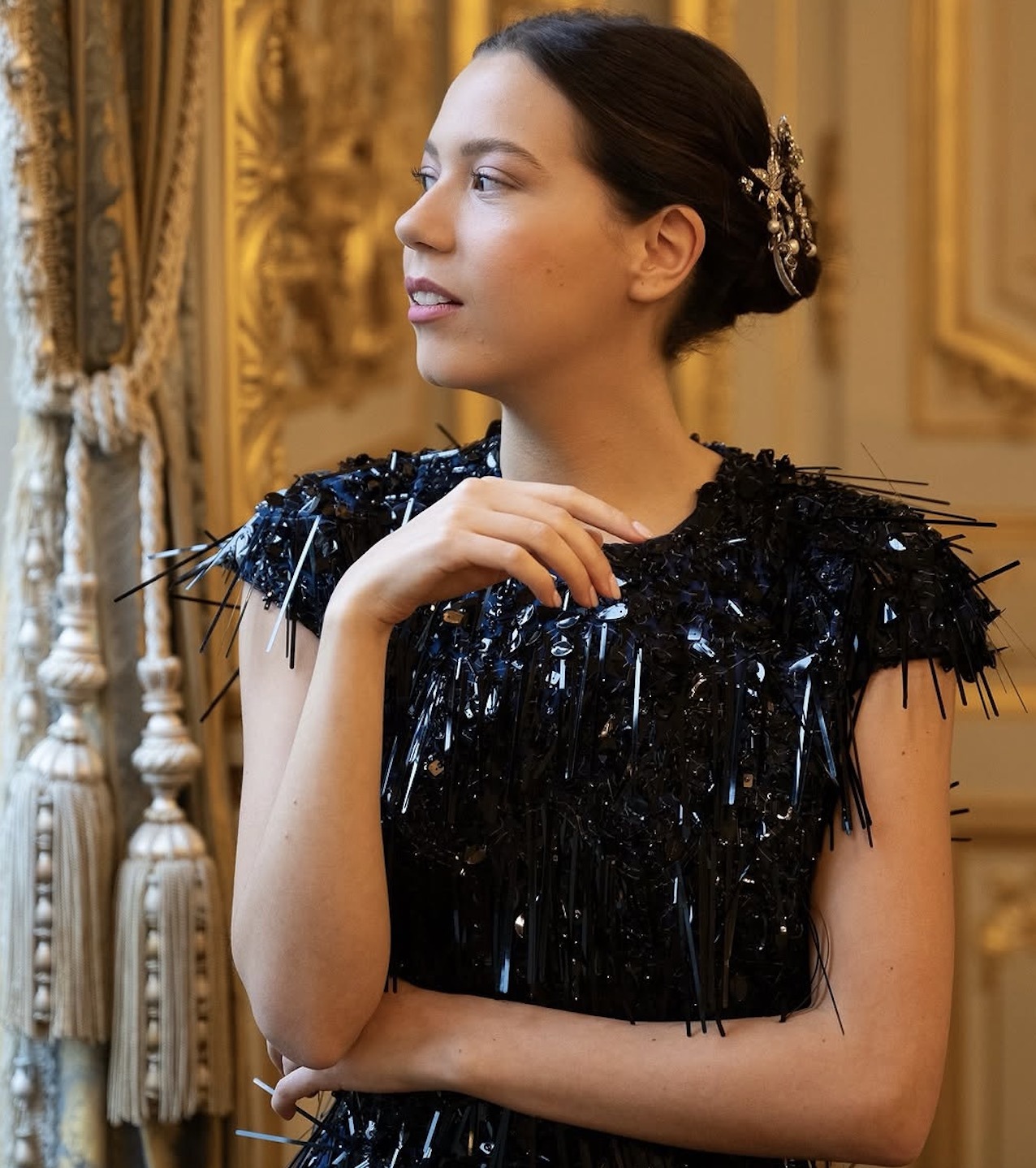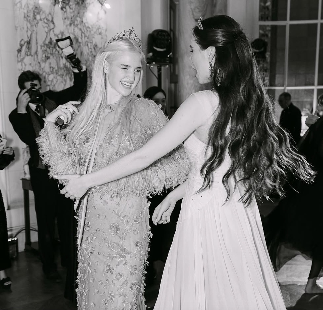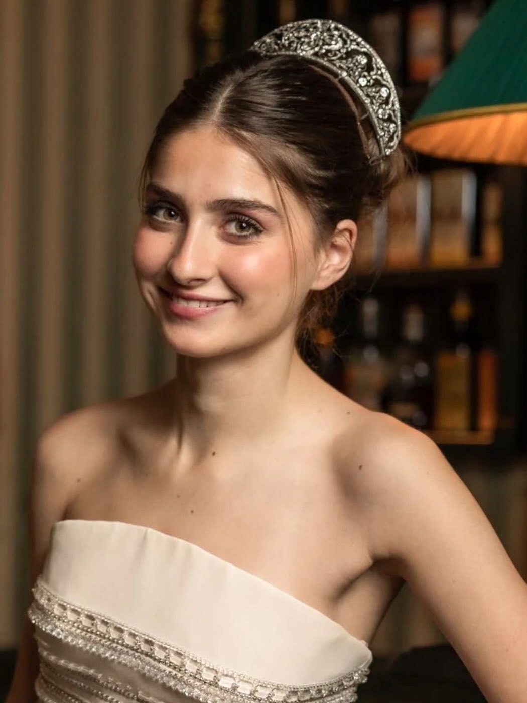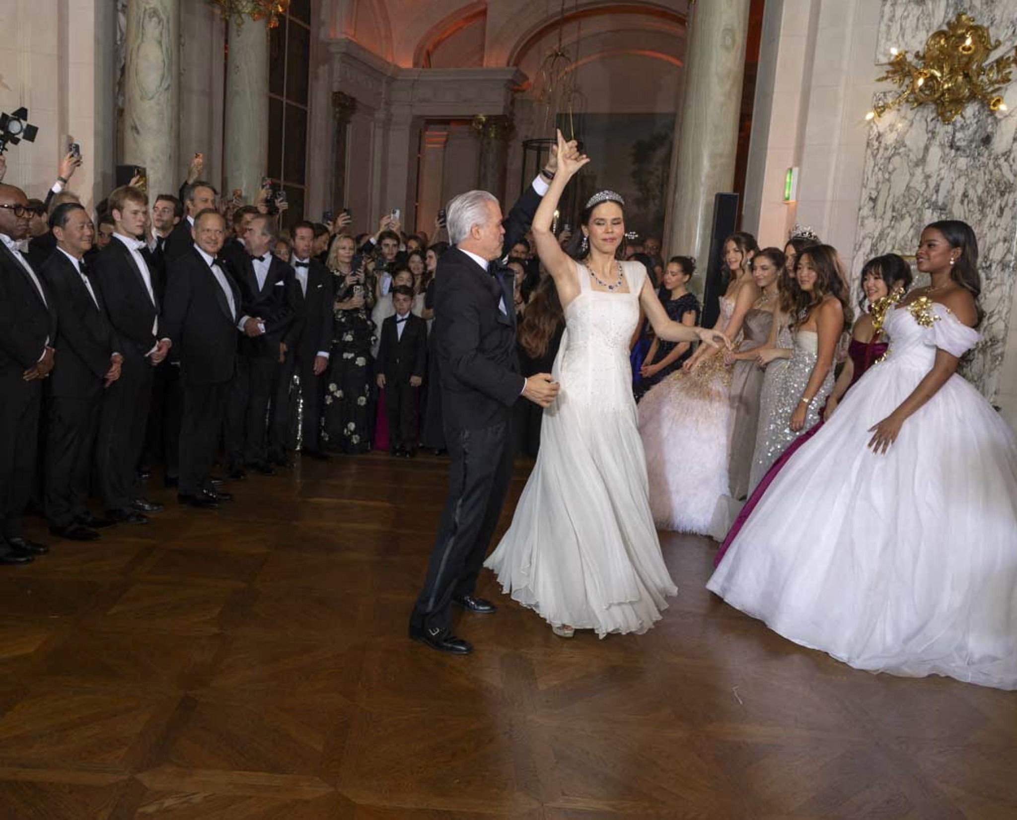 Gabrielle Janssens de Balkany took centre stage in an ethereal white number by Luisa Beccaria. The subtly rhinestoned dress was elevated with a glittering diadem.