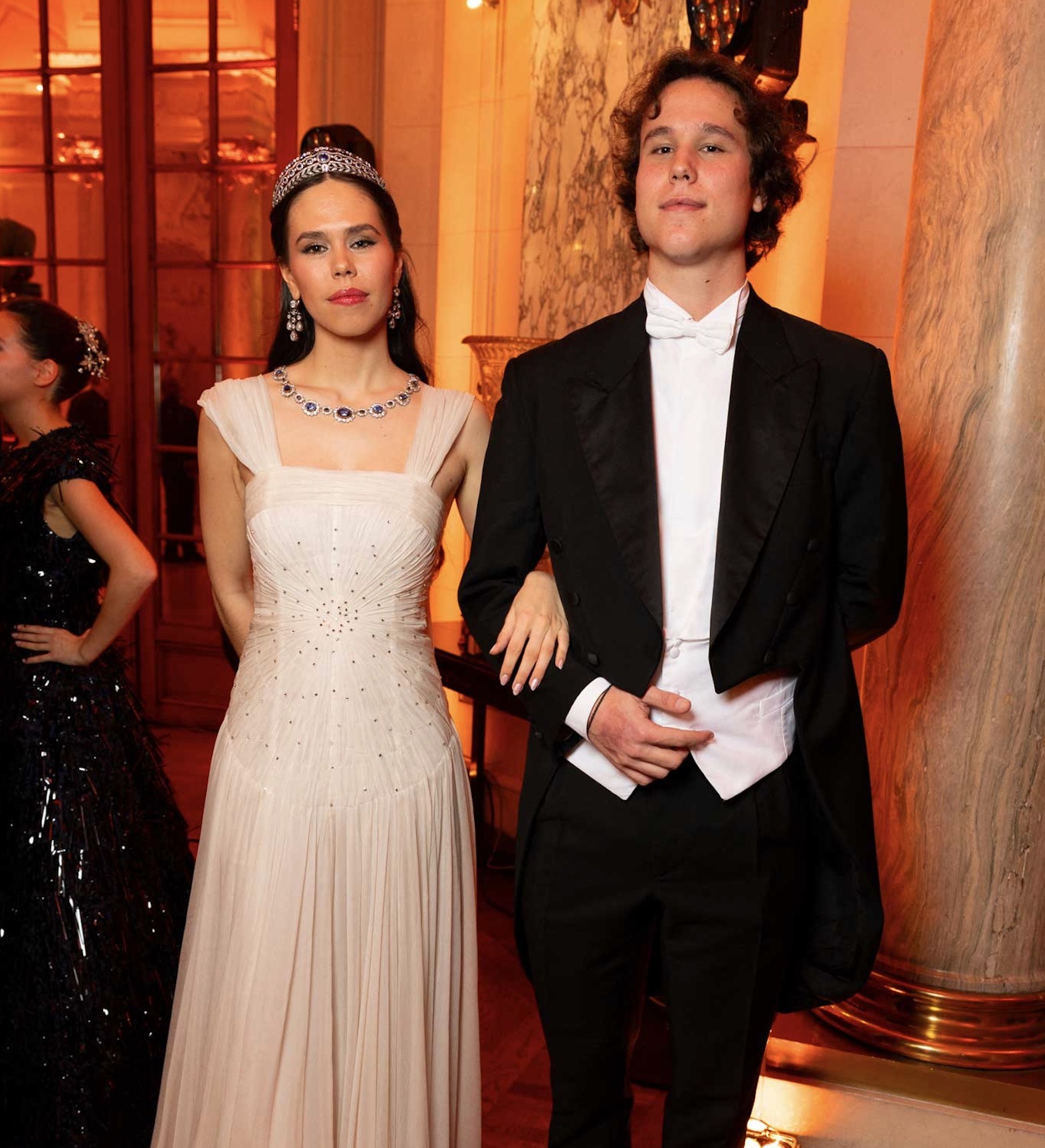 Princess Isabelle of Orléans (wearing an Antonio Grimaldi gown) and her escort, Prince Constantin of Orléans.