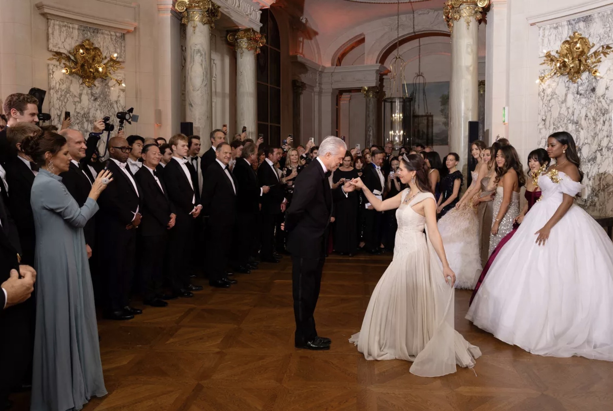 The Ball began with a waltz with the débutantes and their fathers, who then ceded their daughters to the Cavaliers, and the waltz was replaced with contemporary music with a live band.