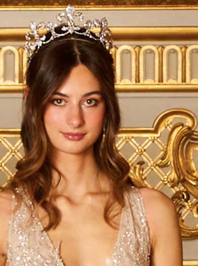 Princess Isabelle of Orléans wore the Tiara from the Orléans-Braganza Royal Family, which was auctioned at Christie’s in 2018 and now belongs to V Muse Jewellery.