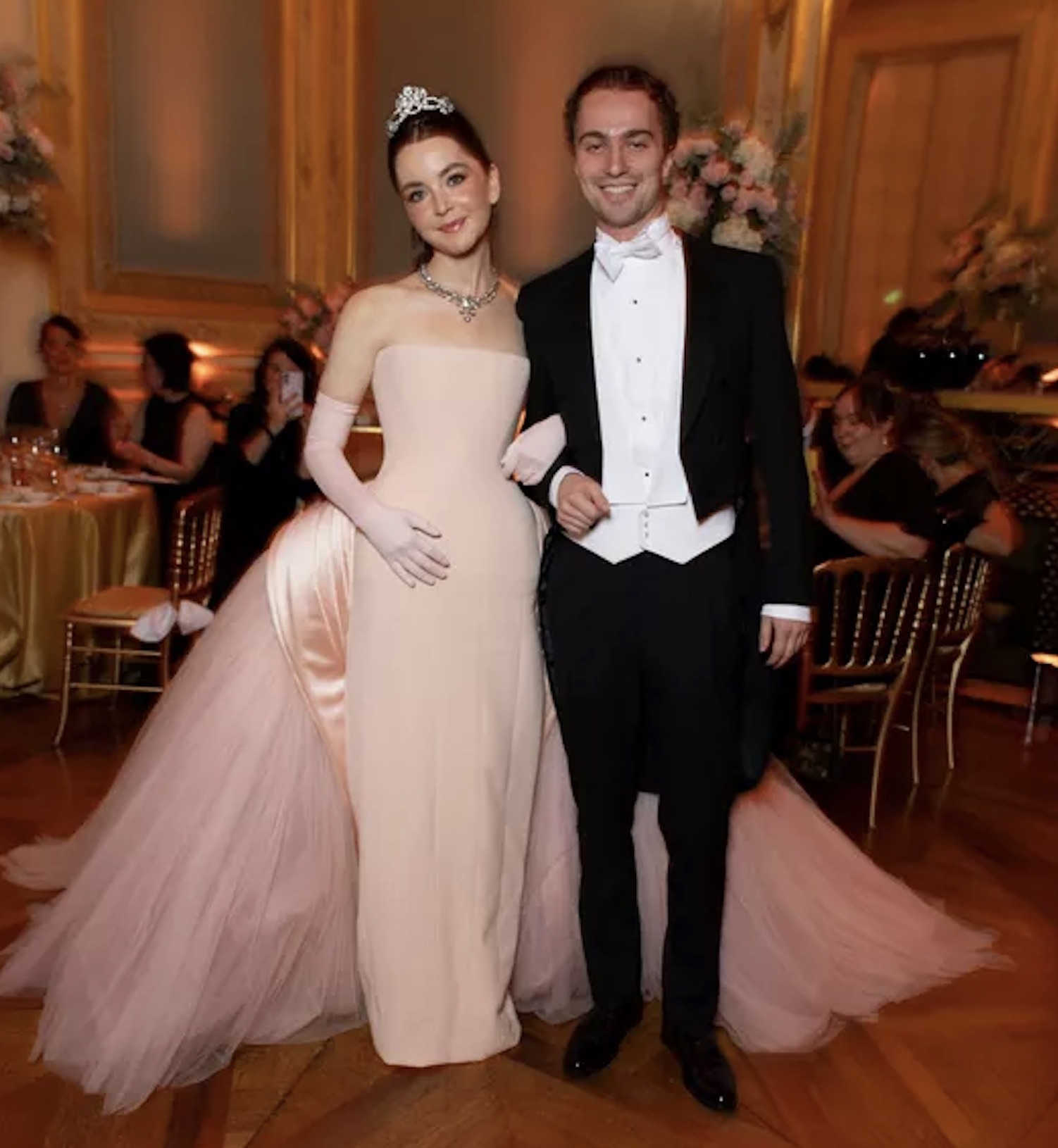 Reagan Sacks embodied princess energy in pink. Donning a Schiaparelli Haute Couture dress, the debutante embraced a fairytale look with her dramatic tulle skirt and glimmering tiara.
