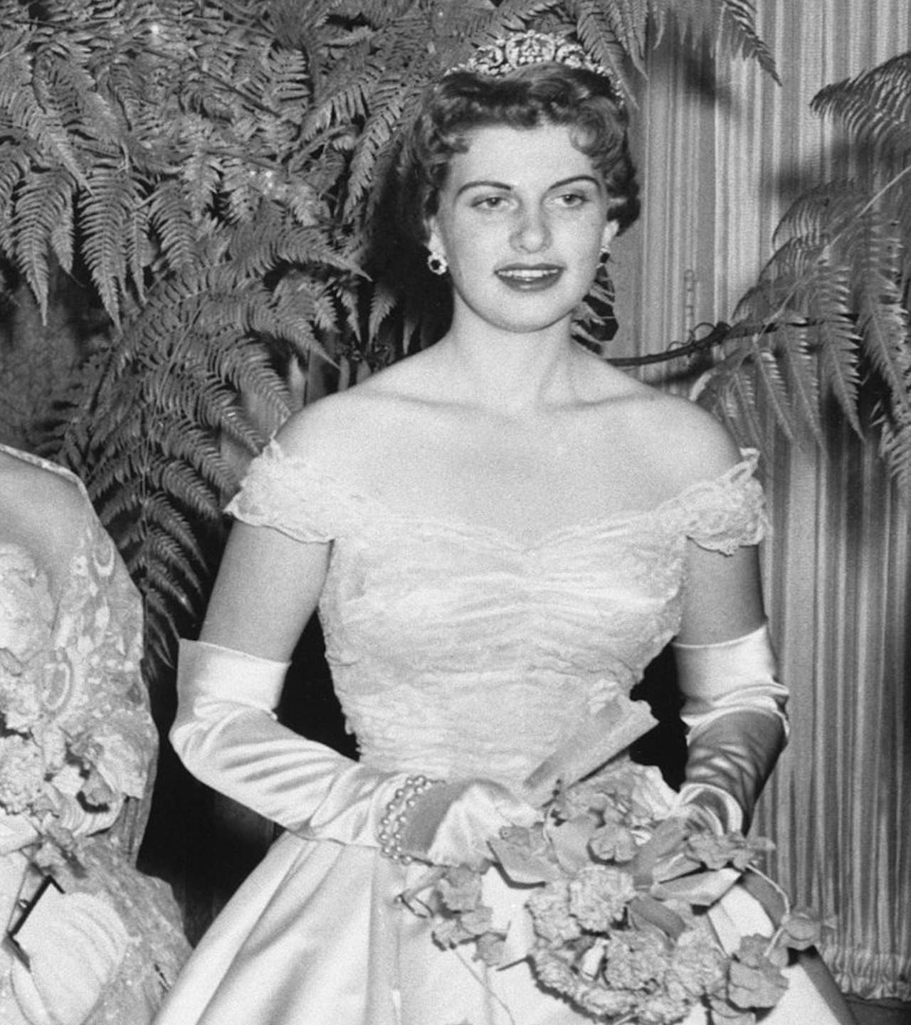 Princess Isabelle of Orléans made her royal lineage known with her stunning tiara and wore a dress with a full skirt by Antonio Grimaldi.