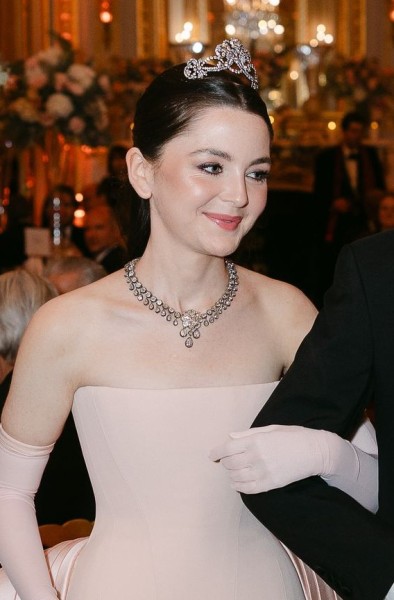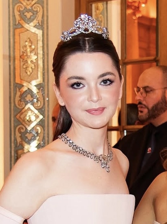 American Debutante Reagan Sacks wore a Köchert Diamond Tiara from Archduchess Marie Anne of Austria, Princess Elie de Bourbon Parme, and a Diamond Necklace from the Duke of Berry that was auctioned in the ‘Royal Jewels from the Bourbon Parma Family’ Sale at Sotheby’s in 2018. The Tiara was also worn by Archduchess Sophia von Habsburg-Lorraine for Le Bal in 2022.