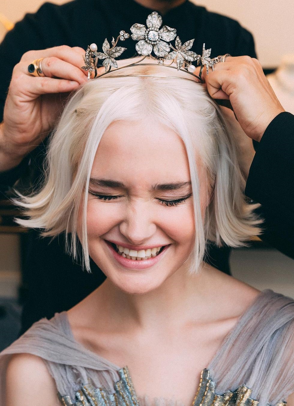 Gabrielle wore a Belle Epoque Sapphire and Diamond Tiara which has been auctioned off at Bonhams and Christie’s over the past two decades and could have now been acquired by V Muse Jewellery.