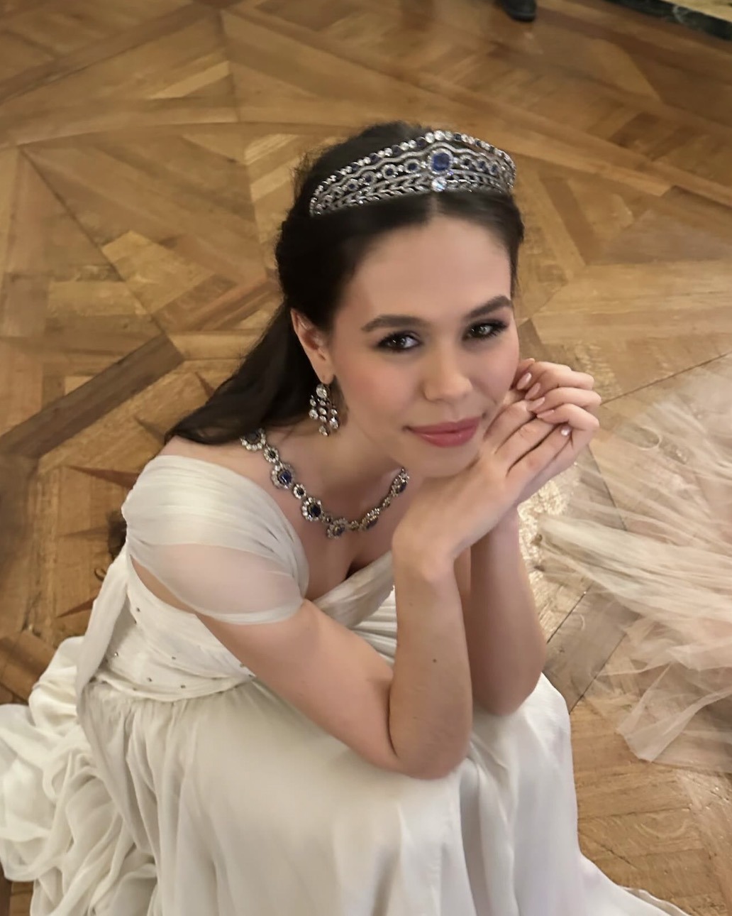 Gabrielle Janssens de Balkany, a granddaughter of Princess Maria Gabriella of Savoy,  wore a Belle Epoque Sapphire and Diamond Tiara which has been auctioned off at Bonhams and Christie’s over the past two decades and has have now been acquired by V Muse Jewellery.